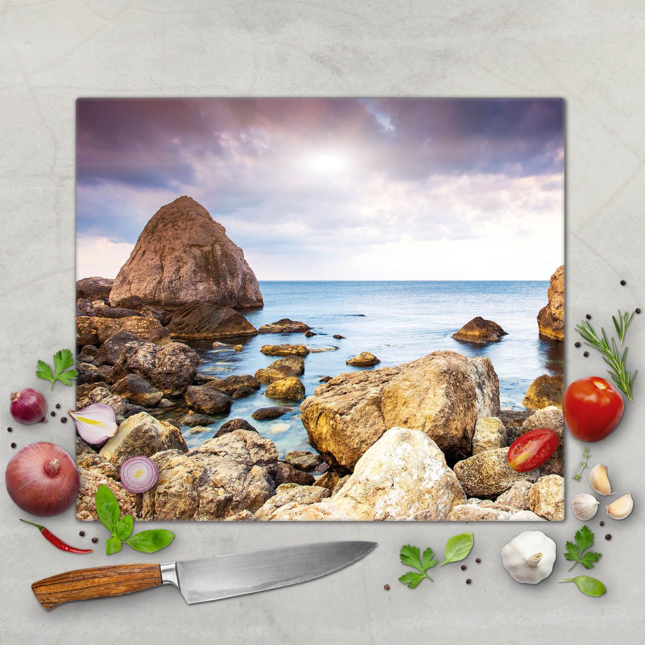 FUNKTION: Das banjado Schneidebrett mit Motiv Steinbucht ist groß und rutschfest und damit ideal für Ihre Küche. Besonders praktisch. Das Schneidebrett ist vielseitig einsetzbar: ob als Spritzschutz hinter dem Herd für Ihre Küche oder als Glas Schneidebrett als hygienische und geruchsneutrale Unterlage. Sie können ebenfalls heiße Töpfe und Pfannen bis 100°C auf der Herdplattenabdeckung abstellen. Sie erhalten ein Multitalent für Ihre Küche. QUALITÄT: Die Schneideplatte Glas besteht aus hochwertigem, gehärtetem und hitzebeständigem Glas. Wählen Sie aus einem unserer zahlreichen Motive das passende Design für Ihre Küche aus. DETAILS: Das Schneidebrett Glas groß ist in verschiedenen Größen verfügbar. Sie erhalten separate Gumminoppen damit Ihr großes Schneidebrett rutschfest in der Küche steht. VIELSEITIG: Das Schneidebrett modern ist ein Allrounder - als Schneideunterlage Küche direkt auf dem Herd oder separat und als Spritzschutz an der Wand aufgestellt - ein praktisches Küchenutensil. BANJADO: Auf Wunsch fertigen wir das Glas Schneide Brett auch als Sondergröße an. Mehrteilige Platten sind auch möglich. Kontaktieren Sie uns gern für eine Spezialanfertigung Ihrer Glasplatte Küche.