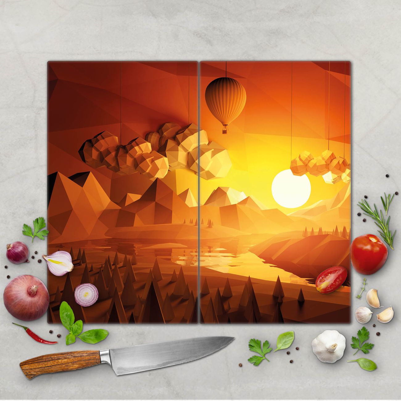 FUNKTION: Das banjado Schneidebrett mit Motiv Sunset ist groß und rutschfest und damit ideal für Ihre Küche. Besonders praktisch. Das Schneidebrett ist vielseitig einsetzbar: ob als Spritzschutz hinter dem Herd für Ihre Küche oder als Glas Schneidebrett als hygienische und geruchsneutrale Unterlage. Sie können ebenfalls heiße Töpfe und Pfannen bis 100°C auf der Herdplattenabdeckung abstellen. Sie erhalten ein Multitalent für Ihre Küche. QUALITÄT: Die Schneideplatte Glas besteht aus hochwertigem, gehärtetem und hitzebeständigem Glas. Wählen Sie aus einem unserer zahlreichen Motive das passende Design für Ihre Küche aus. DETAILS: Das Schneidebrett Glas groß ist in verschiedenen Größen verfügbar. Sie erhalten separate Gumminoppen damit Ihr großes Schneidebrett rutschfest in der Küche steht. VIELSEITIG: Das Schneidebrett modern ist ein Allrounder - als Schneideunterlage Küche direkt auf dem Herd oder separat und als Spritzschutz an der Wand aufgestellt - ein praktisches Küchenutensil. BANJADO: Auf Wunsch fertigen wir das Glas Schneide Brett auch als Sondergröße an. Mehrteilige Platten sind auch möglich. Kontaktieren Sie uns gern für eine Spezialanfertigung Ihrer Glasplatte Küche.