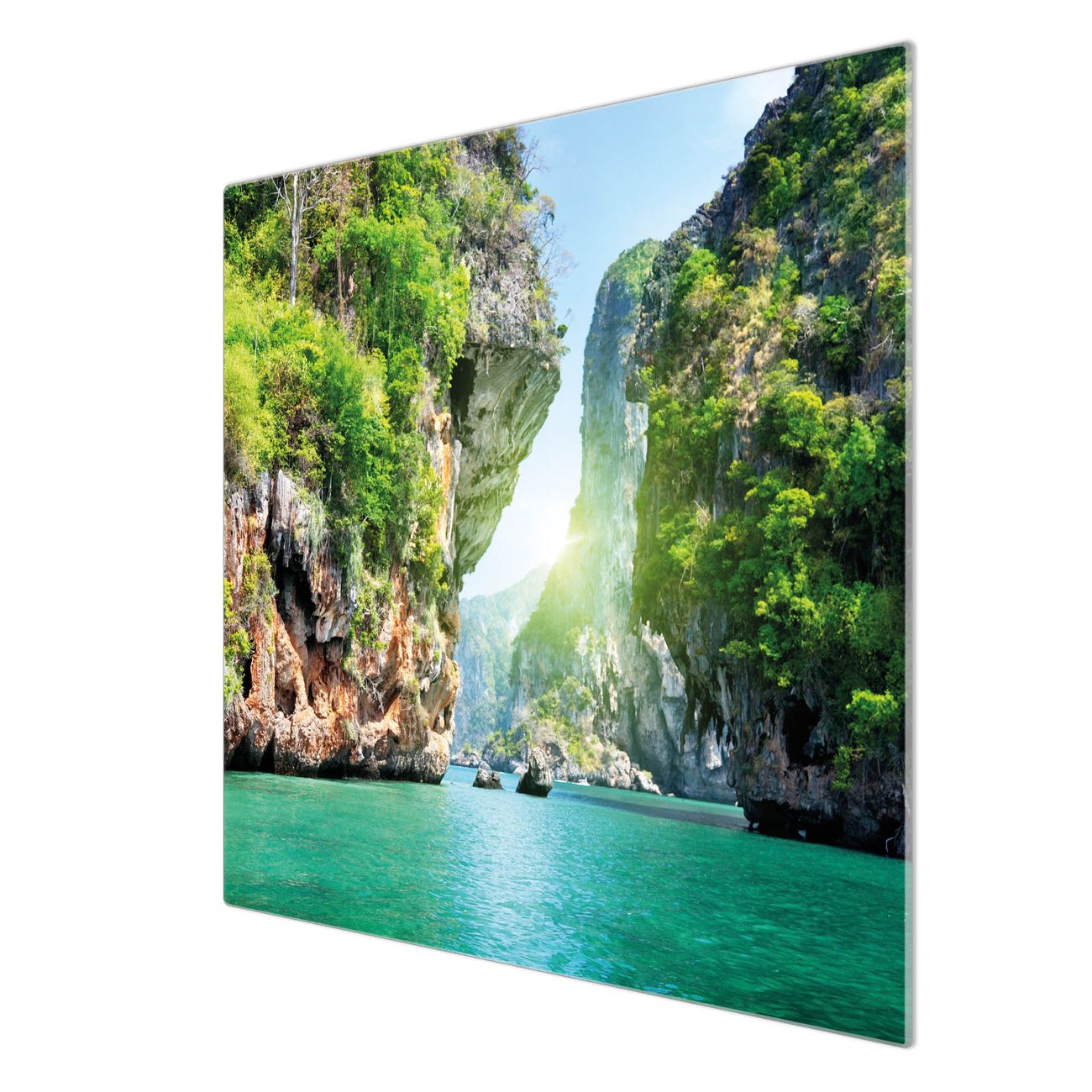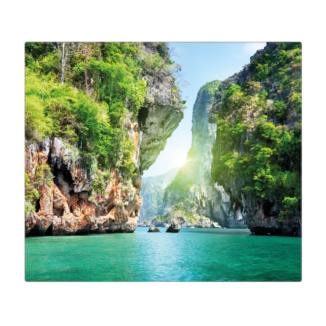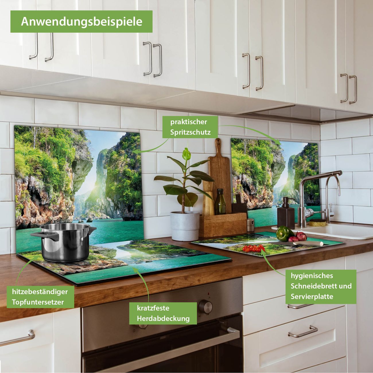 FUNKTION: Das banjado Schneidebrett mit Motiv Versteckte Bucht ist groß und rutschfest und damit ideal für Ihre Küche. Besonders praktisch. Das Schneidebrett ist vielseitig einsetzbar: ob als Spritzschutz hinter dem Herd für Ihre Küche oder als Glas Schneidebrett als hygienische und geruchsneutrale Unterlage. Sie können ebenfalls heiße Töpfe und Pfannen bis 100°C auf der Herdplattenabdeckung abstellen. Sie erhalten ein Multitalent für Ihre Küche. QUALITÄT: Die Schneideplatte Glas besteht aus hochwertigem, gehärtetem und hitzebeständigem Glas. Wählen Sie aus einem unserer zahlreichen Motive das passende Design für Ihre Küche aus. DETAILS: Das Schneidebrett Glas groß ist in verschiedenen Größen verfügbar. Sie erhalten separate Gumminoppen damit Ihr großes Schneidebrett rutschfest in der Küche steht. VIELSEITIG: Das Schneidebrett modern ist ein Allrounder - als Schneideunterlage Küche direkt auf dem Herd oder separat und als Spritzschutz an der Wand aufgestellt - ein praktisches Küchenutensil. BANJADO: Auf Wunsch fertigen wir das Glas Schneide Brett auch als Sondergröße an. Mehrteilige Platten sind auch möglich. Kontaktieren Sie uns gern für eine Spezialanfertigung Ihrer Glasplatte Küche.