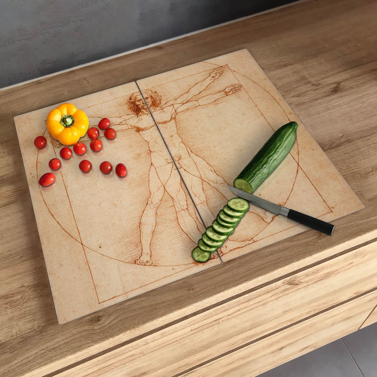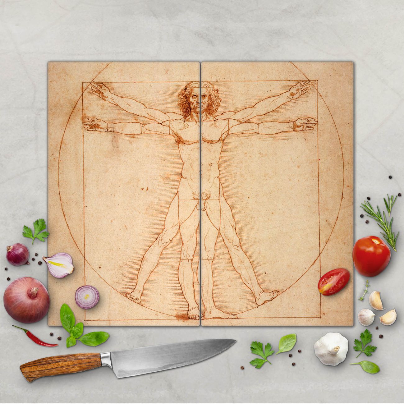 Schneidebrett 1 und 2 teilig Motiv Vitruvianische Figur