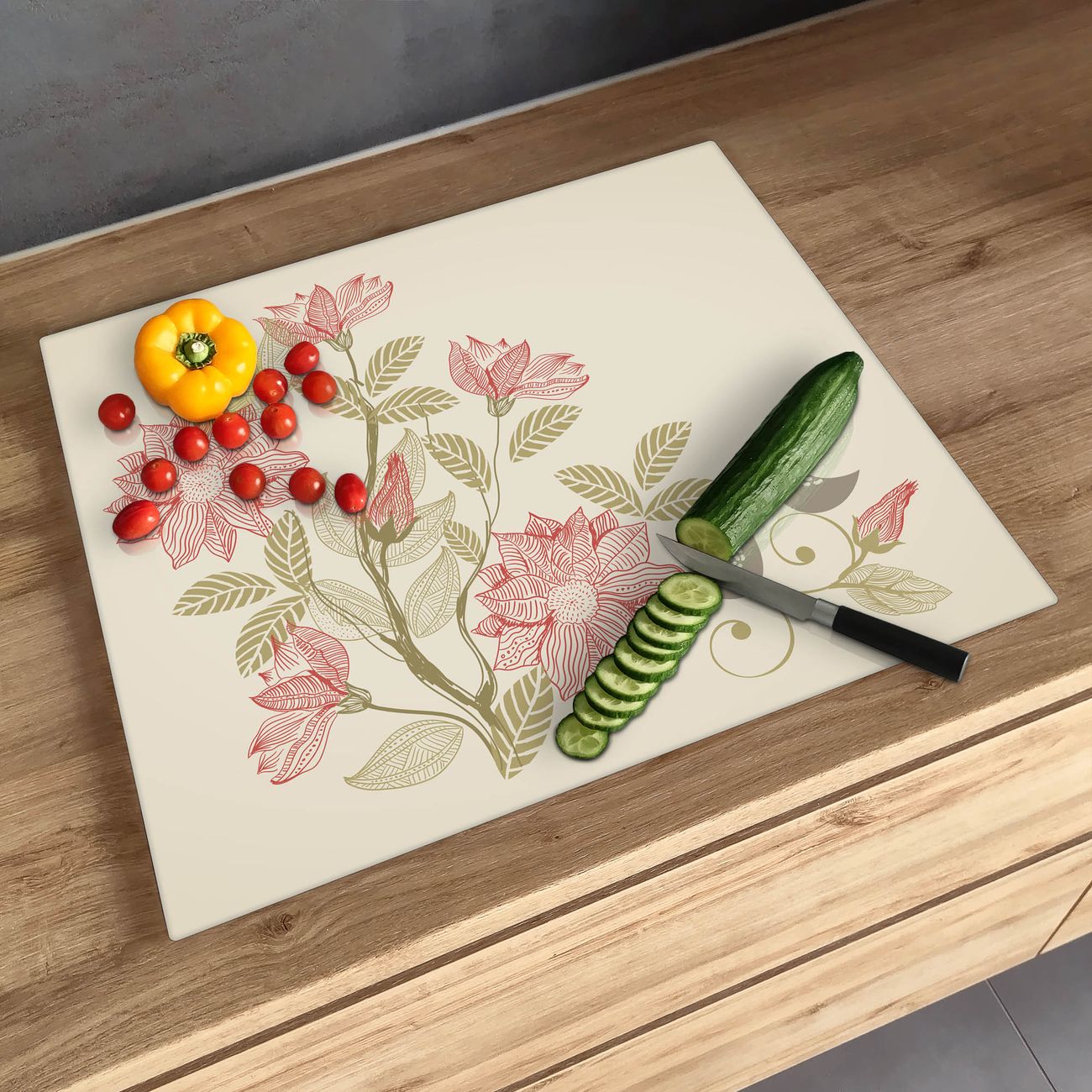 FUNKTION: Das banjado Schneidebrett mit Motiv Vogelpaar ist groß und rutschfest und damit ideal für Ihre Küche. Besonders praktisch. Das Schneidebrett ist vielseitig einsetzbar: ob als Spritzschutz hinter dem Herd für Ihre Küche oder als Glas Schneidebrett als hygienische und geruchsneutrale Unterlage. Sie können ebenfalls heiße Töpfe und Pfannen bis 100°C auf der Herdplattenabdeckung abstellen. Sie erhalten ein Multitalent für Ihre Küche. QUALITÄT: Die Schneideplatte Glas besteht aus hochwertigem, gehärtetem und hitzebeständigem Glas. Wählen Sie aus einem unserer zahlreichen Motive das passende Design für Ihre Küche aus. DETAILS: Das Schneidebrett Glas groß ist in verschiedenen Größen verfügbar. Sie erhalten separate Gumminoppen damit Ihr großes Schneidebrett rutschfest in der Küche steht. VIELSEITIG: Das Schneidebrett modern ist ein Allrounder - als Schneideunterlage Küche direkt auf dem Herd oder separat und als Spritzschutz an der Wand aufgestellt - ein praktisches Küchenutensil. BANJADO: Auf Wunsch fertigen wir das Glas Schneide Brett auch als Sondergröße an. Mehrteilige Platten sind auch möglich. Kontaktieren Sie uns gern für eine Spezialanfertigung Ihrer Glasplatte Küche.