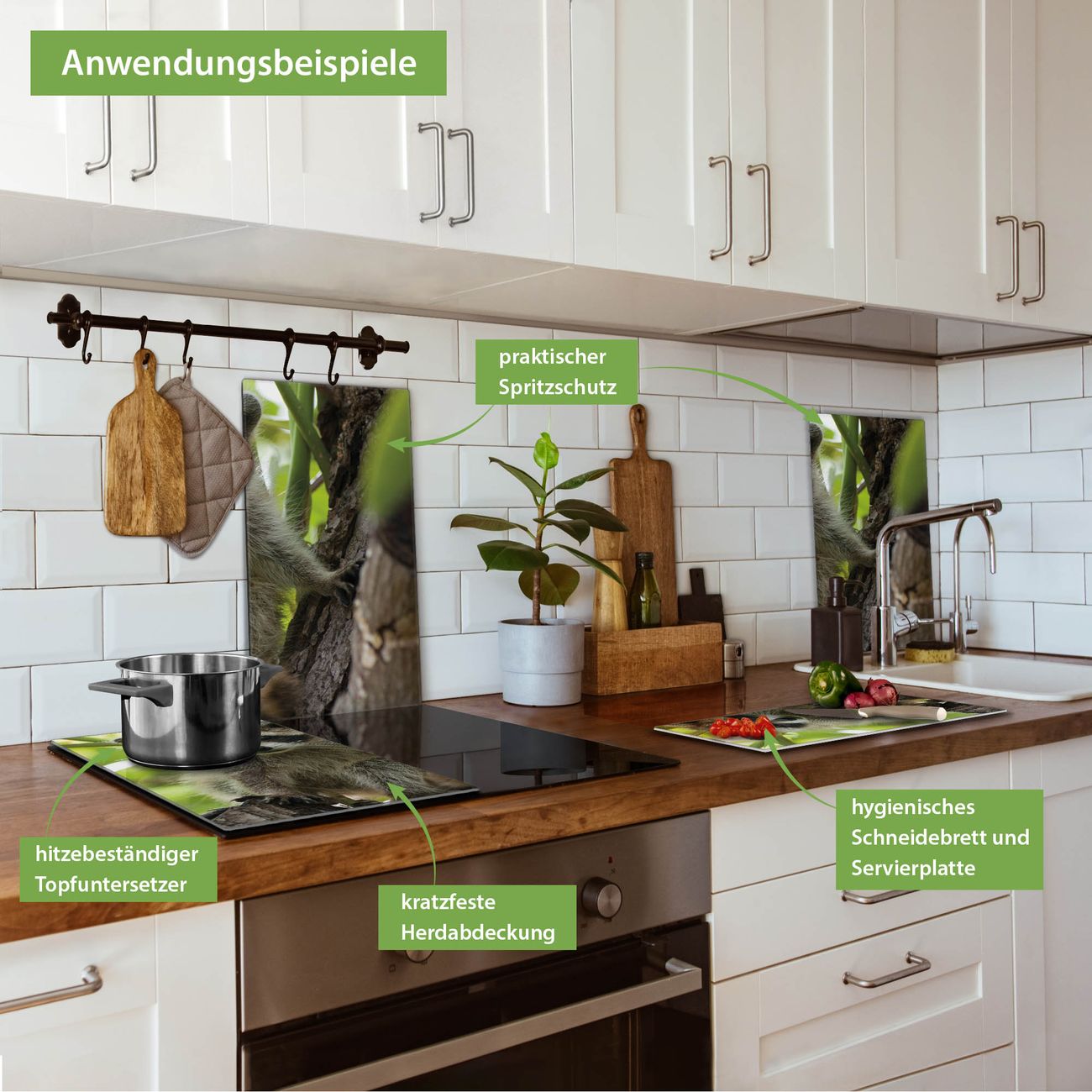 FUNKTION: Das banjado Schneidebrett mit Motiv Waschbär ist groß und rutschfest und damit ideal für Ihre Küche. Besonders praktisch. Das Schneidebrett ist vielseitig einsetzbar: ob als Spritzschutz hinter dem Herd für Ihre Küche oder als Glas Schneidebrett als hygienische und geruchsneutrale Unterlage. Sie können ebenfalls heiße Töpfe und Pfannen bis 100°C auf der Herdplattenabdeckung abstellen. Sie erhalten ein Multitalent für Ihre Küche. QUALITÄT: Die Schneideplatte Glas besteht aus hochwertigem, gehärtetem und hitzebeständigem Glas. Wählen Sie aus einem unserer zahlreichen Motive das passende Design für Ihre Küche aus. DETAILS: Das Schneidebrett Glas groß ist in verschiedenen Größen verfügbar. Sie erhalten separate Gumminoppen damit Ihr großes Schneidebrett rutschfest in der Küche steht. VIELSEITIG: Das Schneidebrett modern ist ein Allrounder - als Schneideunterlage Küche direkt auf dem Herd oder separat und als Spritzschutz an der Wand aufgestellt - ein praktisches Küchenutensil. BANJADO: Auf Wunsch fertigen wir das Glas Schneide Brett auch als Sondergröße an. Mehrteilige Platten sind auch möglich. Kontaktieren Sie uns gern für eine Spezialanfertigung Ihrer Glasplatte Küche.