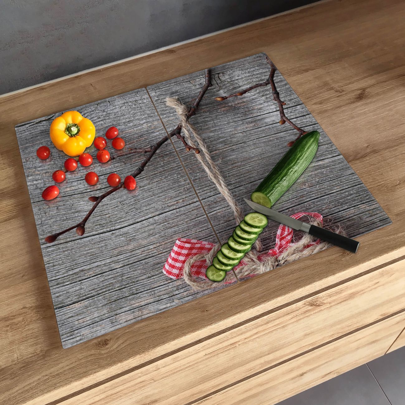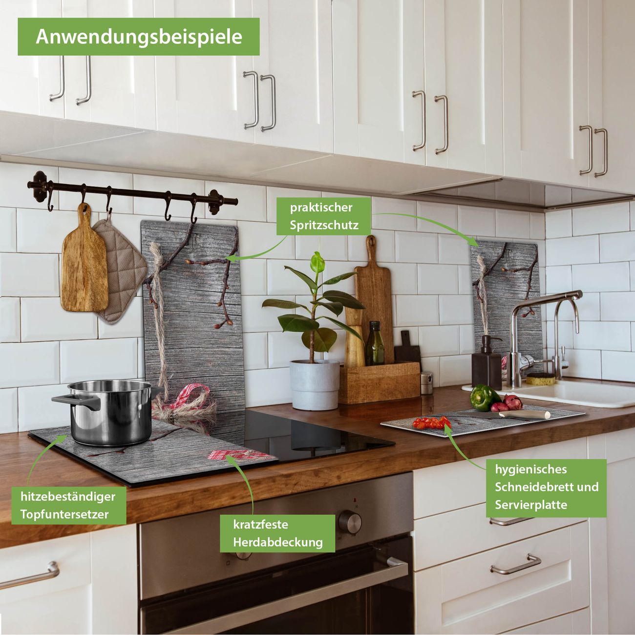 FUNKTION: Das banjado Schneidebrett mit Motiv Weihnachtsstern ist groß und rutschfest und damit ideal für Ihre Küche. Besonders praktisch. Das Schneidebrett ist vielseitig einsetzbar: ob als Spritzschutz hinter dem Herd für Ihre Küche oder als Glas Schneidebrett als hygienische und geruchsneutrale Unterlage. Sie können ebenfalls heiße Töpfe und Pfannen bis 100°C auf der Herdplattenabdeckung abstellen. Sie erhalten ein Multitalent für Ihre Küche. QUALITÄT: Die Schneideplatte Glas besteht aus hochwertigem, gehärtetem und hitzebeständigem Glas. Wählen Sie aus einem unserer zahlreichen Motive das passende Design für Ihre Küche aus. DETAILS: Das Schneidebrett Glas groß ist in verschiedenen Größen verfügbar. Sie erhalten separate Gumminoppen damit Ihr großes Schneidebrett rutschfest in der Küche steht. VIELSEITIG: Das Schneidebrett modern ist ein Allrounder - als Schneideunterlage Küche direkt auf dem Herd oder separat und als Spritzschutz an der Wand aufgestellt - ein praktisches Küchenutensil. BANJADO: Auf Wunsch fertigen wir das Glas Schneide Brett auch als Sondergröße an. Mehrteilige Platten sind auch möglich. Kontaktieren Sie uns gern für eine Spezialanfertigung Ihrer Glasplatte Küche.