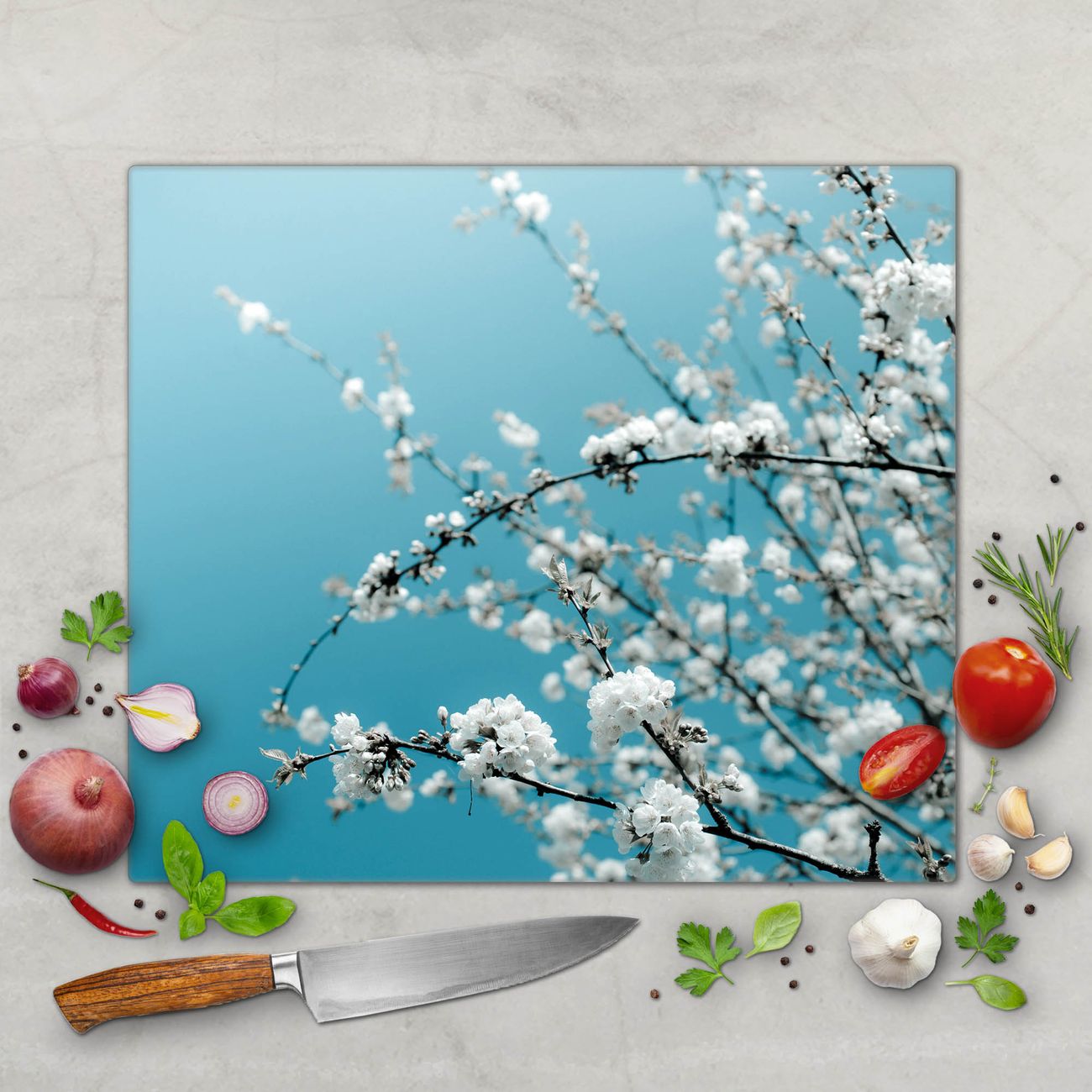 Schneidebrett 1 und 2 teilig Motiv weiße Kirschblüten