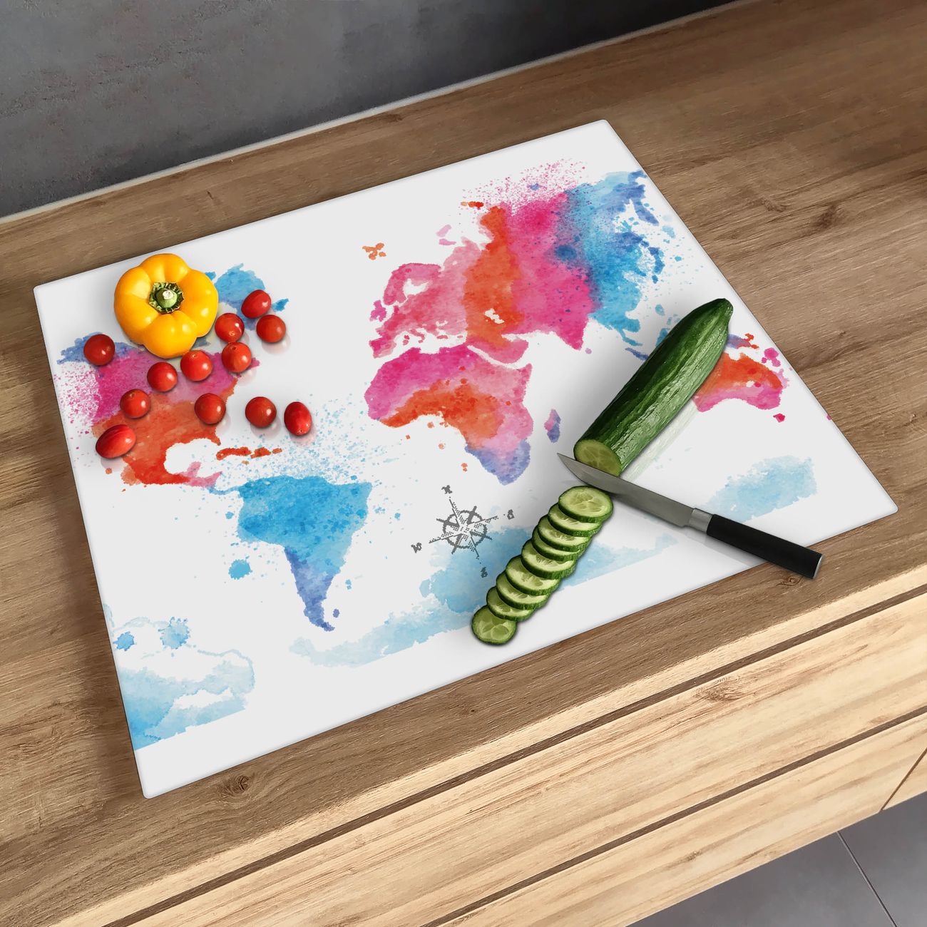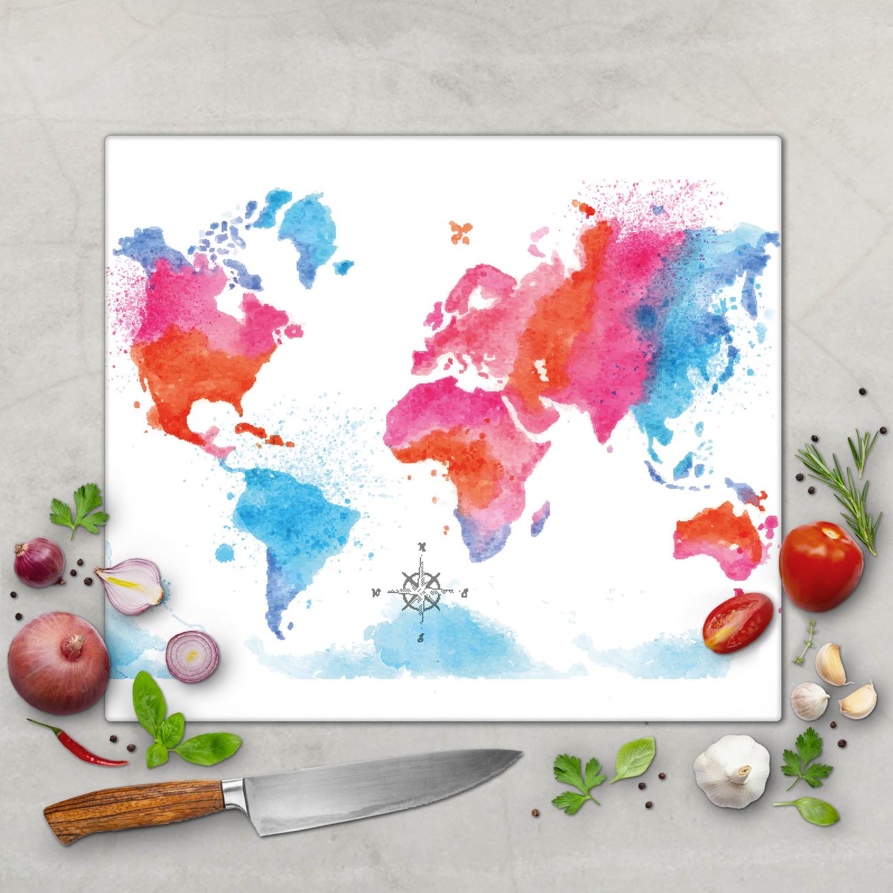 Schneidebrett 1 und 2 teilig Motiv Weltkarte pastell
