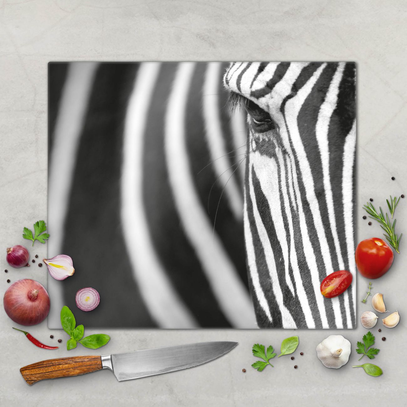 Schneidebrett 1 und 2 teilig Motiv Zebra En Face