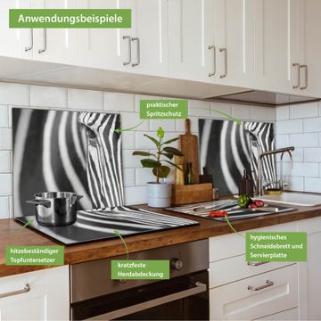 FUNKTION: Das banjado Schneidebrett mit Motiv Zebra En Face ist groß und rutschfest und damit ideal für Ihre Küche. Besonders praktisch. Das Schneidebrett ist vielseitig einsetzbar: ob als Spritzschutz hinter dem Herd für Ihre Küche oder als Glas Schneidebrett als hygienische und geruchsneutrale Unterlage. Sie können ebenfalls heiße Töpfe und Pfannen bis 100°C auf der Herdplattenabdeckung abstellen. Sie erhalten ein Multitalent für Ihre Küche. QUALITÄT: Die Schneideplatte Glas besteht aus hochwertigem, gehärtetem und hitzebeständigem Glas. Wählen Sie aus einem unserer zahlreichen Motive das passende Design für Ihre Küche aus. DETAILS: Das Schneidebrett Glas groß ist in verschiedenen Größen verfügbar. Sie erhalten separate Gumminoppen damit Ihr großes Schneidebrett rutschfest in der Küche steht. VIELSEITIG: Das Schneidebrett modern ist ein Allrounder - als Schneideunterlage Küche direkt auf dem Herd oder separat und als Spritzschutz an der Wand aufgestellt - ein praktisches Küchenutensil. BANJADO: Auf Wunsch fertigen wir das Glas Schneide Brett auch als Sondergröße an. Mehrteilige Platten sind auch möglich. Kontaktieren Sie uns gern für eine Spezialanfertigung Ihrer Glasplatte Küche.