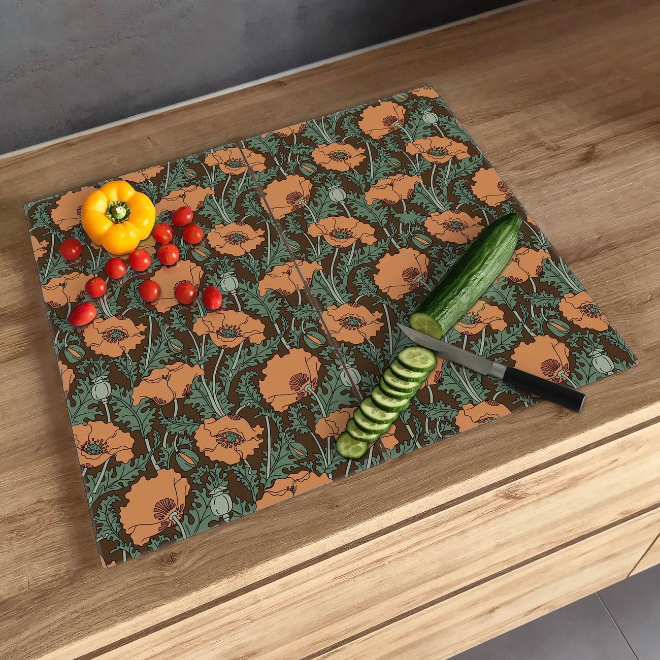 Schneidebrett 1 und 2 teilig Motiv Zeichnung Mohn