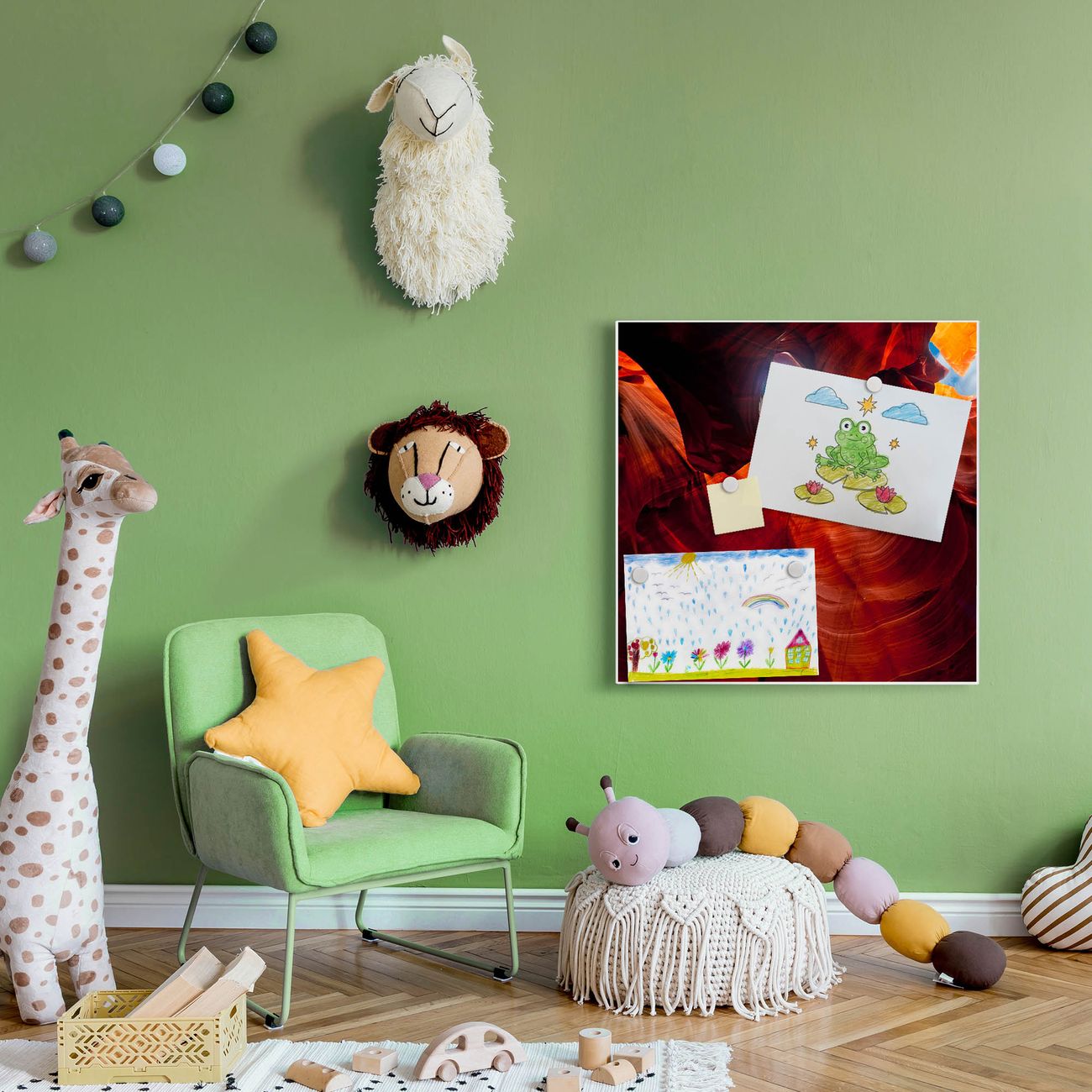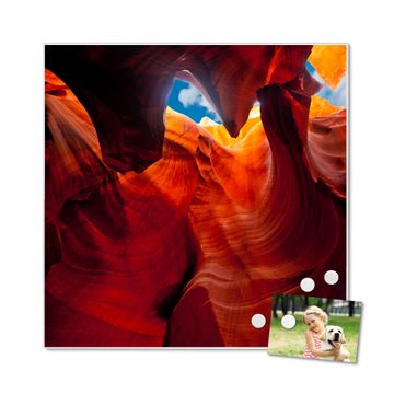 Die banjado Design Magnettafel mit Motiv Motiv Antelope Canyon 2 bringt Ordnung in Ihr Zettelchaos. Fotos, Termine, Notizen oder Rezepte lassen Sich hier stilvoll mit Magneten ordnen, Sie behalten alles im Blick. An der Pinnwand halten alle handelsüblichen Magnete. Mit dieser Pinnwand aus Metall haben Sie auch ohne Notizen und Magnete ein schönes Dekoelement. Das Quadratische Format bietet Ihnen ausreichend Platz um alle wichtigen Informationen im Blick zu behalten.