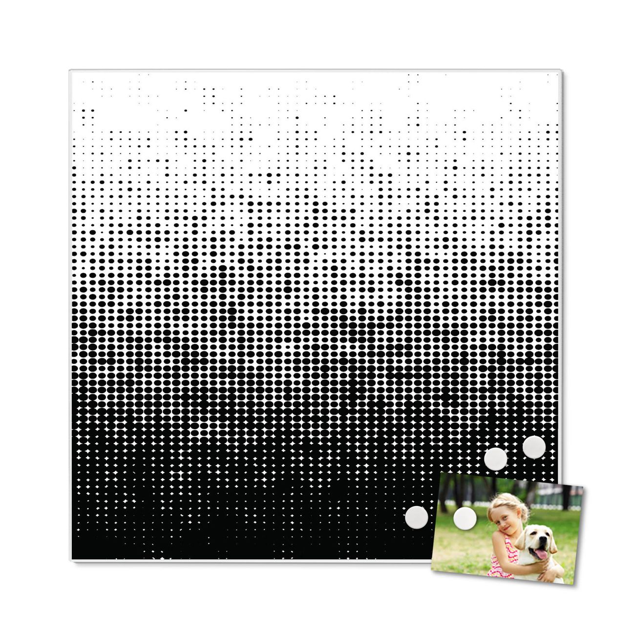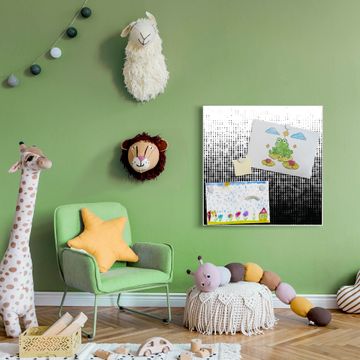 Die banjado Design Magnettafel mit Motiv Motiv Black or White bringt Ordnung in Ihr Zettelchaos. Fotos, Termine, Notizen oder Rezepte lassen Sich hier stilvoll mit Magneten ordnen, Sie behalten alles im Blick. An der Pinnwand halten alle handelsüblichen Magnete. Mit dieser Pinnwand aus Metall haben Sie auch ohne Notizen und Magnete ein schönes Dekoelement. Das Quadratische Format bietet Ihnen ausreichend Platz um alle wichtigen Informationen im Blick zu behalten.