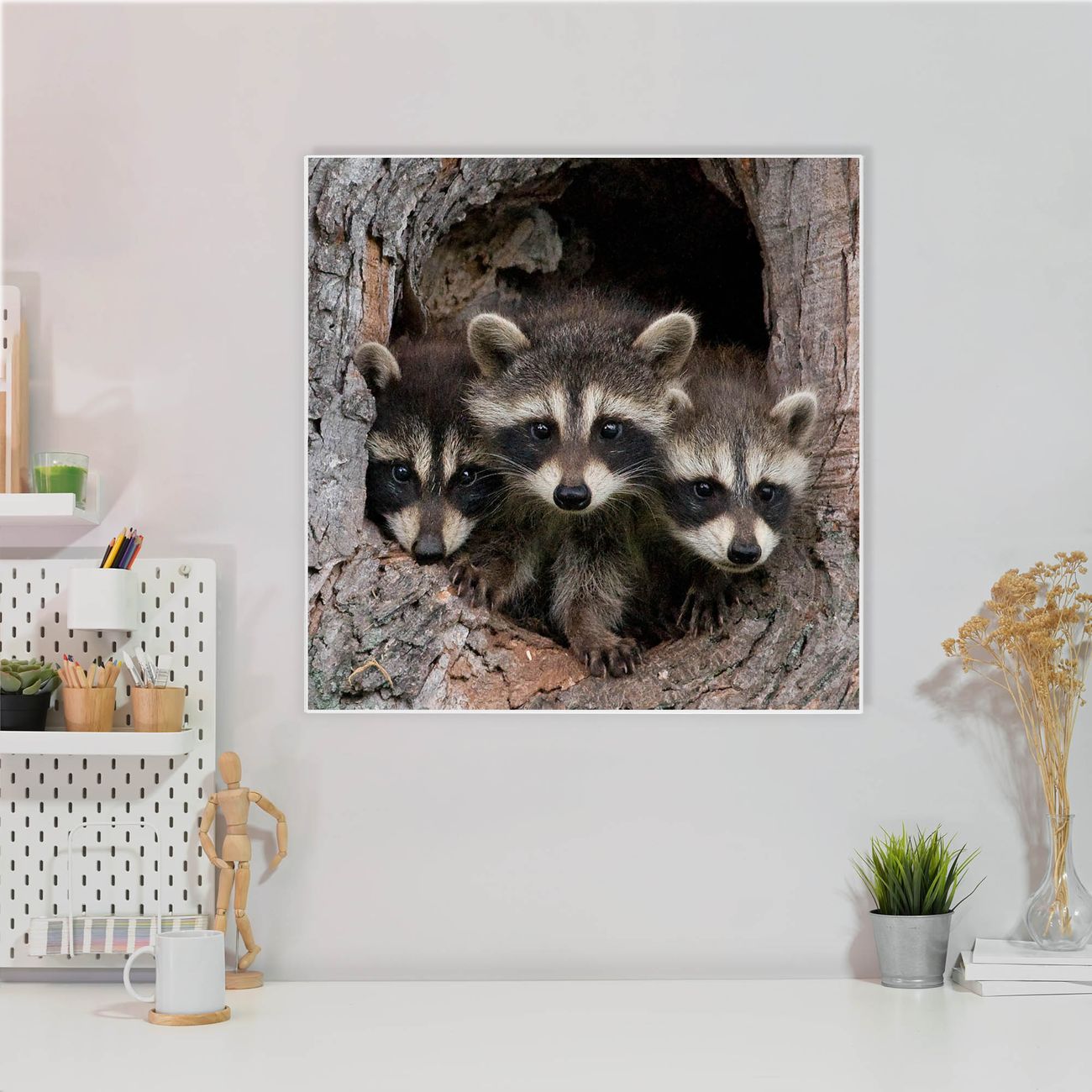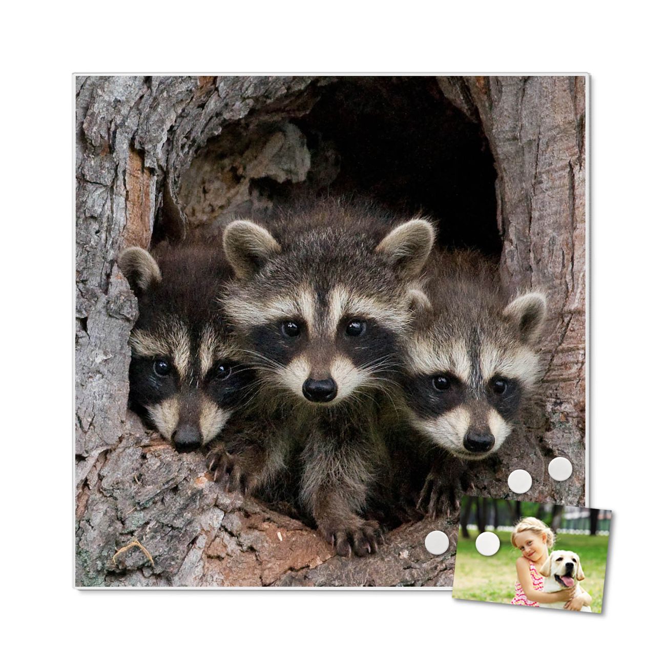 Stahl Magnettafel 50x50cm Drei Waschbären