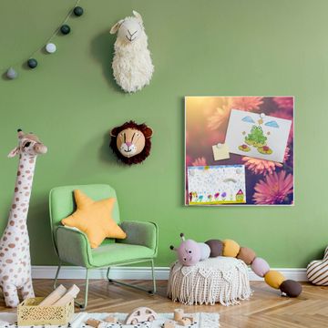 Die banjado Design Magnettafel mit Motiv Motiv Gerbera 2 bringt Ordnung in Ihr Zettelchaos. Fotos, Termine, Notizen oder Rezepte lassen Sich hier stilvoll mit Magneten ordnen, Sie behalten alles im Blick. An der Pinnwand halten alle handelsüblichen Magnete. Mit dieser Pinnwand aus Metall haben Sie auch ohne Notizen und Magnete ein schönes Dekoelement. Das Quadratische Format bietet Ihnen ausreichend Platz um alle wichtigen Informationen im Blick zu behalten.