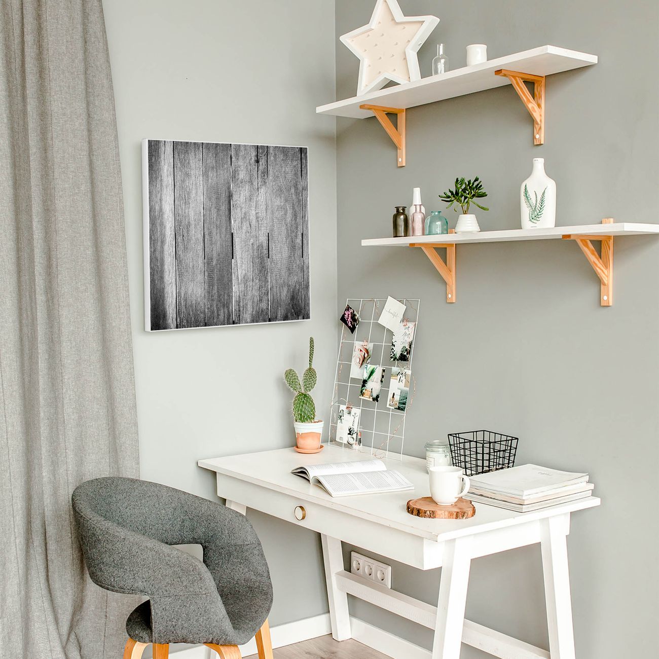 Stahl Magnettafel 50x50cm Holz Monochrom