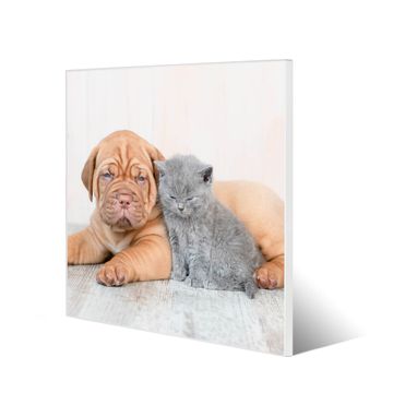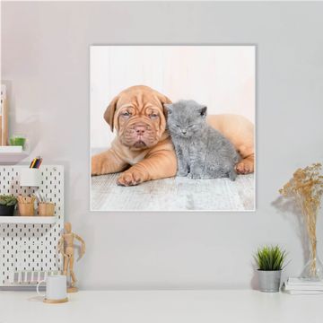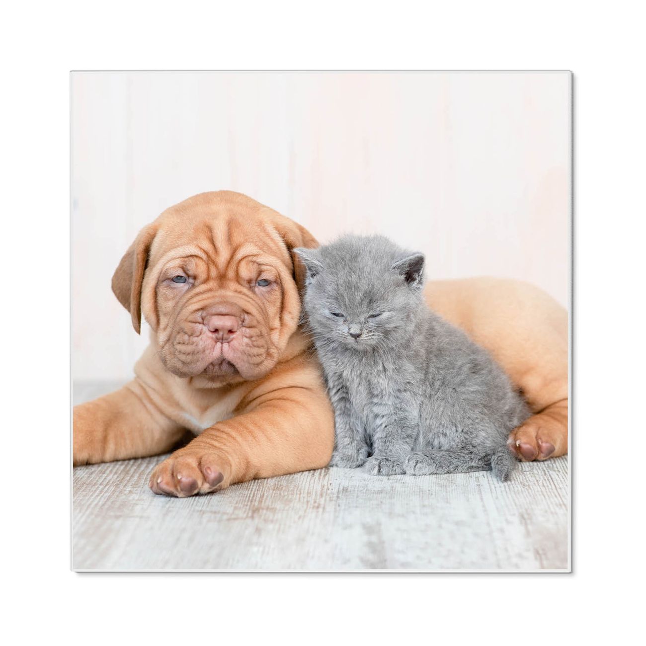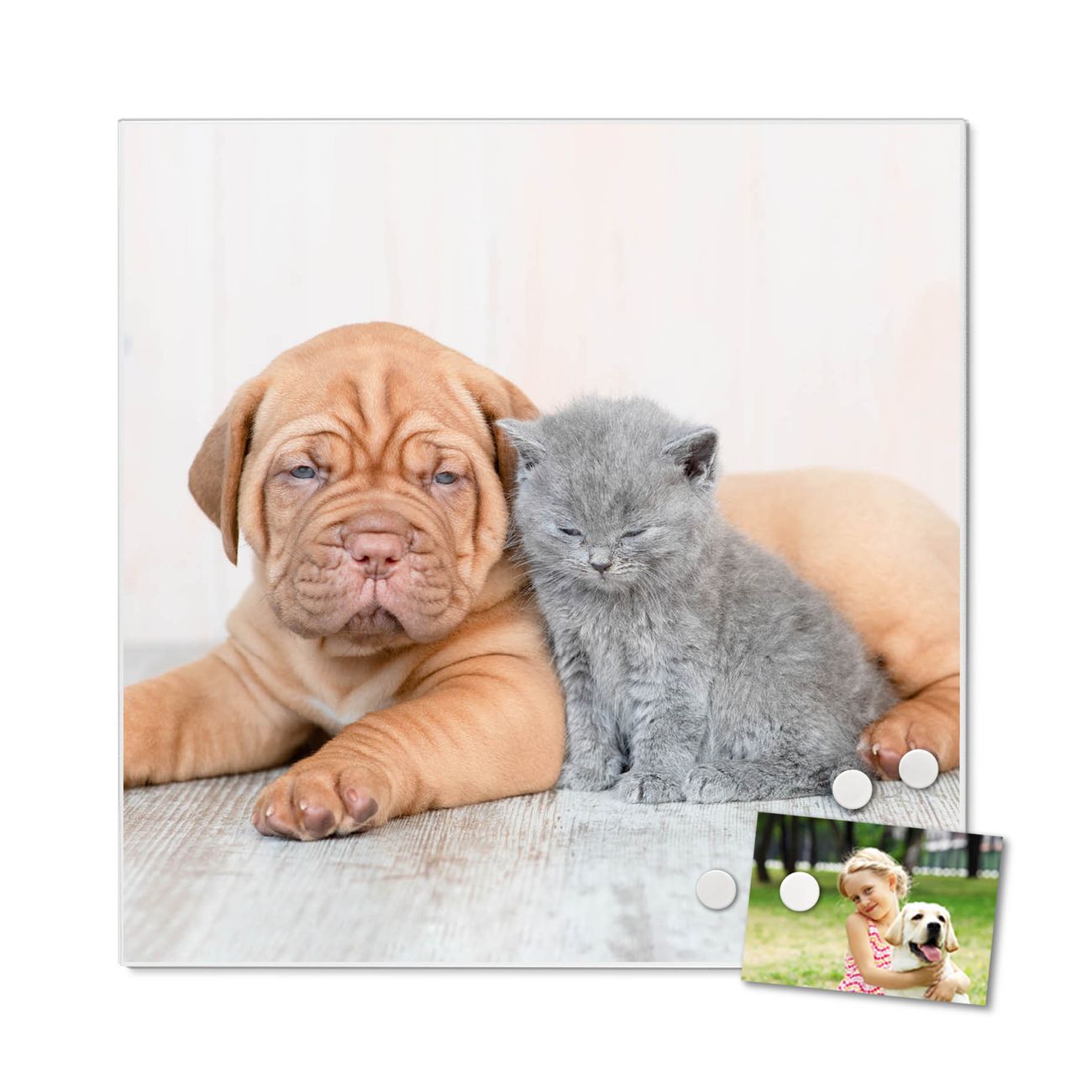 Die banjado Design Magnettafel mit Motiv Motiv Hund und Katze bringt Ordnung in Ihr Zettelchaos. Fotos, Termine, Notizen oder Rezepte lassen Sich hier stilvoll mit Magneten ordnen, Sie behalten alles im Blick. An der Pinnwand halten alle handelsüblichen Magnete. Mit dieser Pinnwand aus Metall haben Sie auch ohne Notizen und Magnete ein schönes Dekoelement. Das Quadratische Format bietet Ihnen ausreichend Platz um alle wichtigen Informationen im Blick zu behalten.