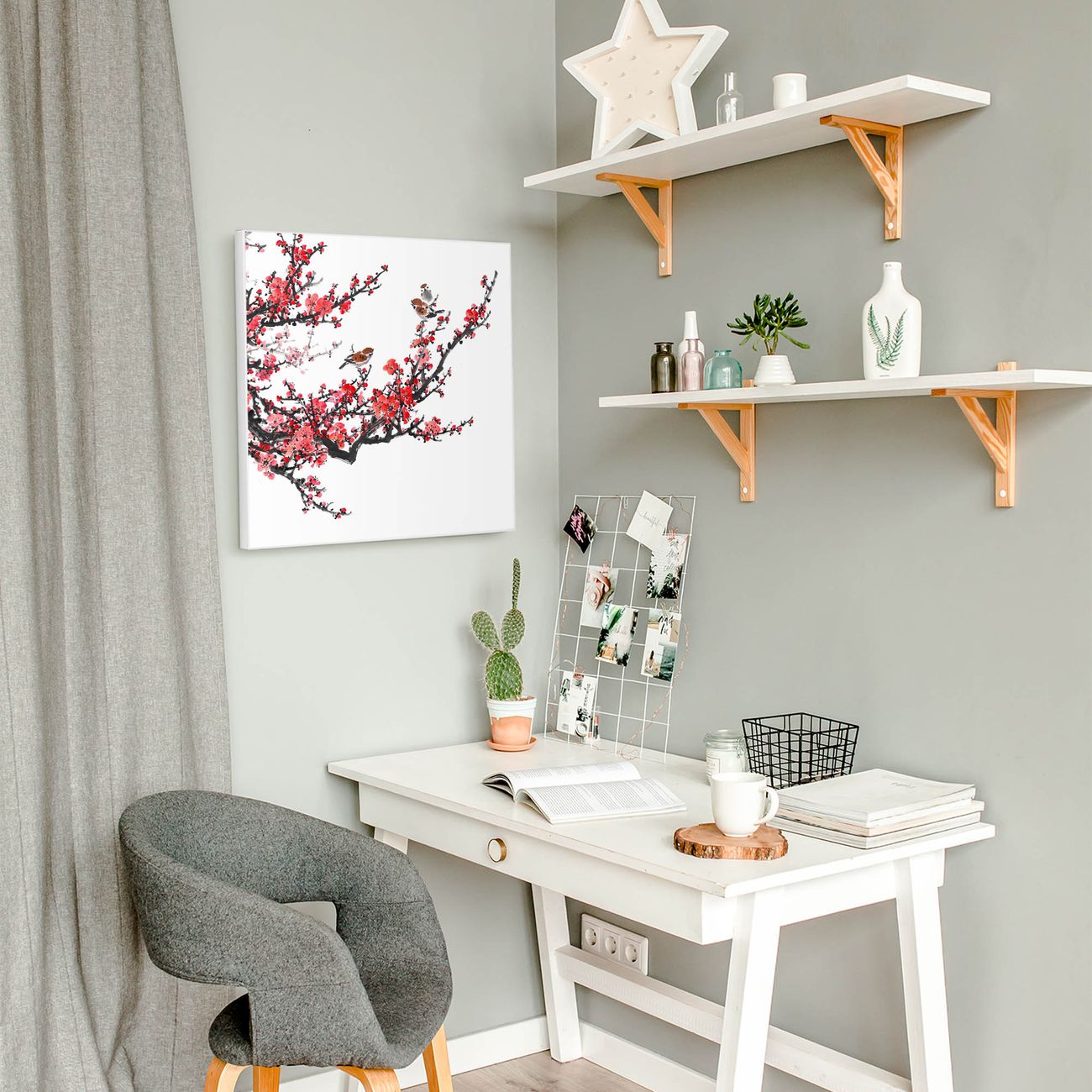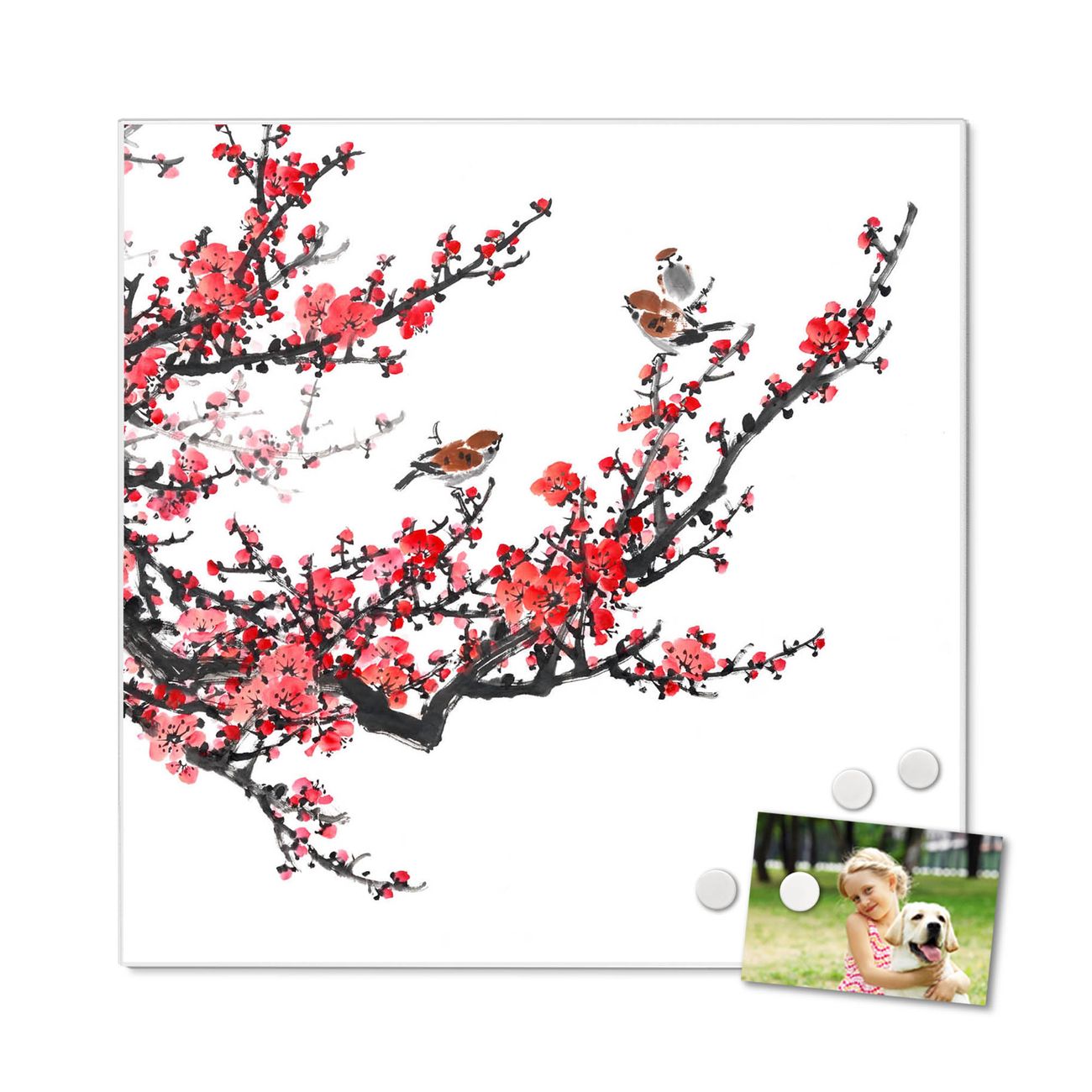 Stahl Magnettafel 50x50cm Japanische Blüten 1