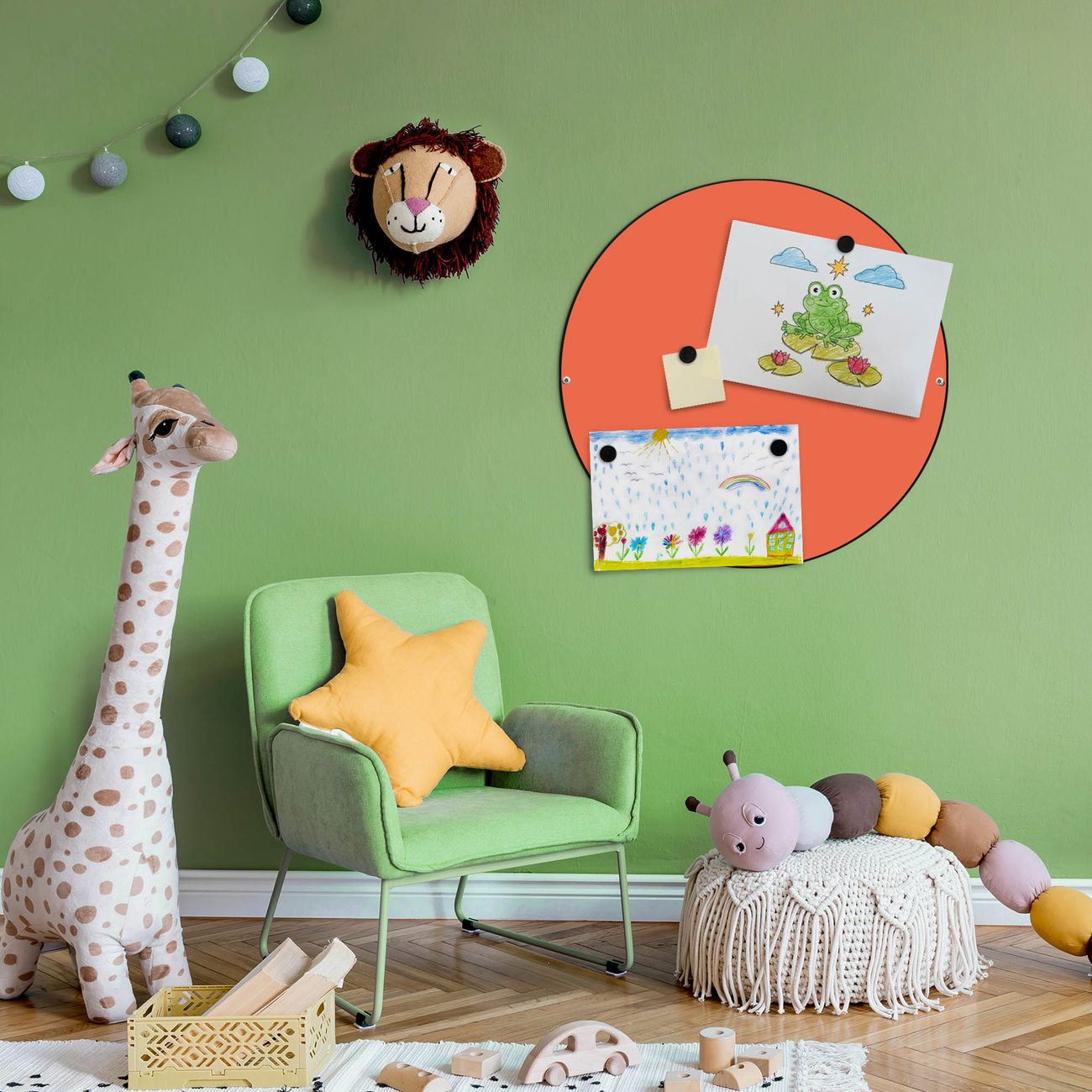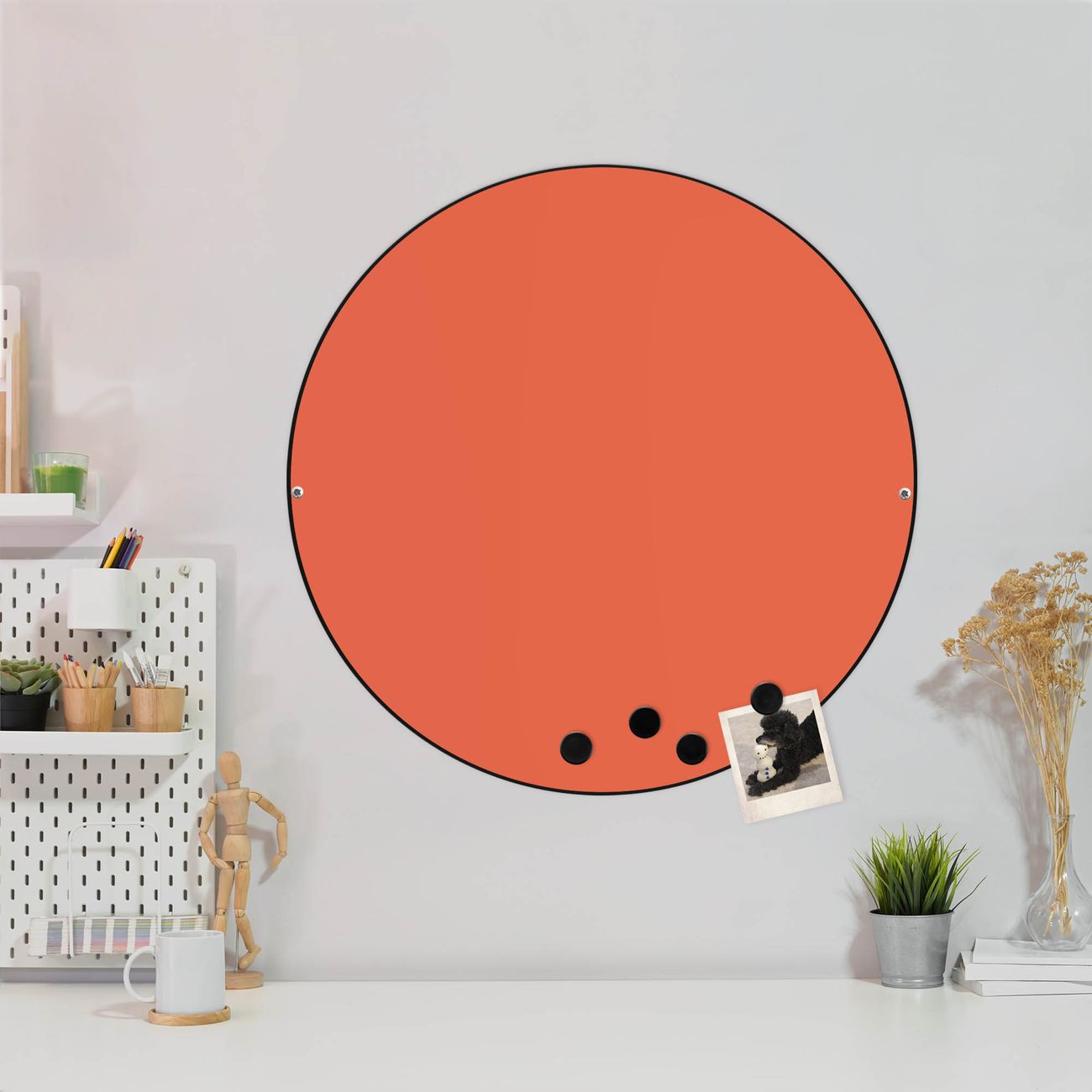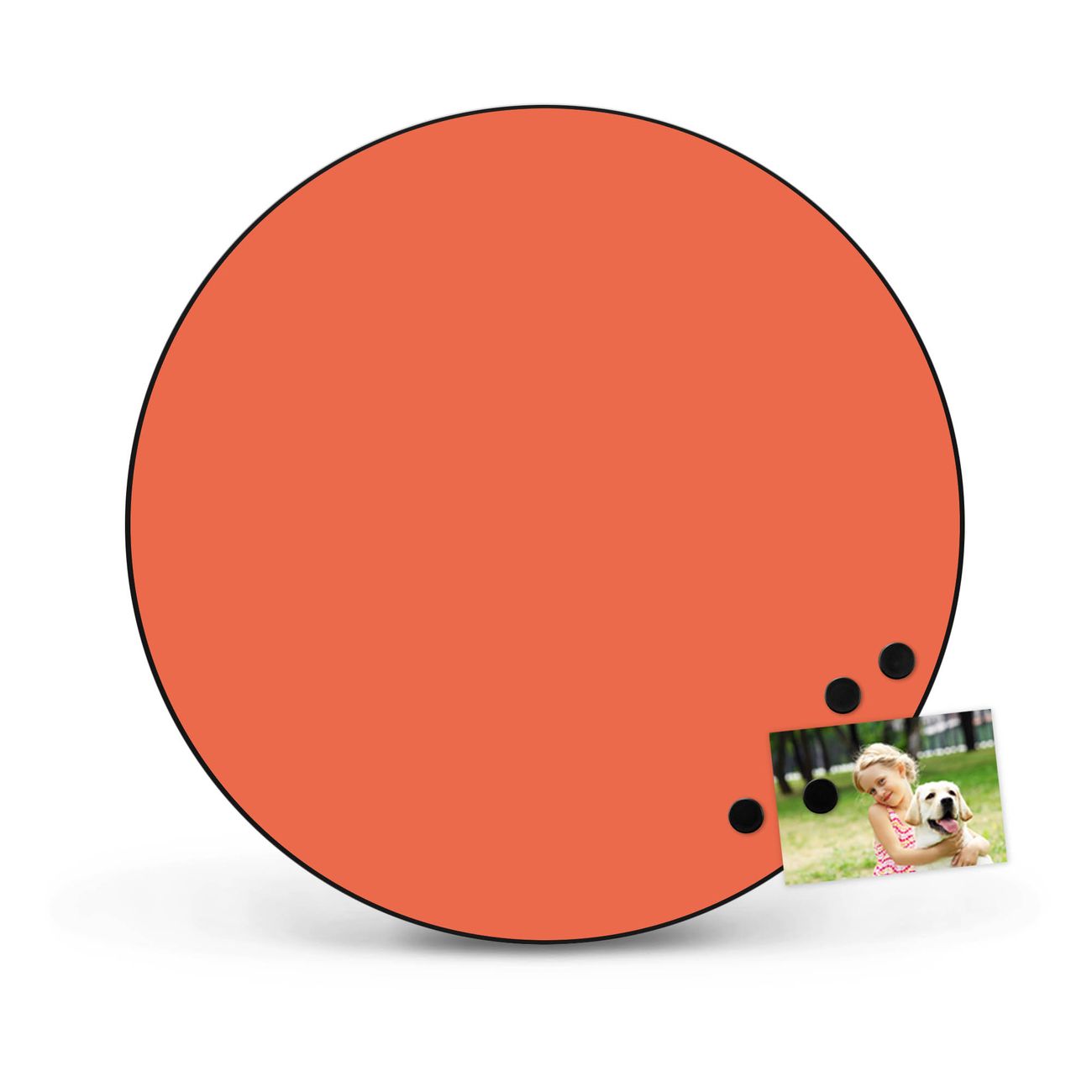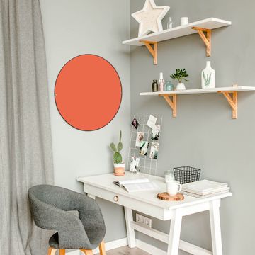 FUNKTION / DESIGN Die banjado Magnettafel mit dem Motiv Farbe Orange bringt Ordnung in Ihr Zettelchaos. Fotos, Termine, Notizen oder Rezepte lassen Sich hier stilvoll mit Magneten ordnen, Sie behalten alles im Blick. Die Design Magnetwand ist beschreibbar und wieder abwischbar. Mit dieser Pinnwand haben Sie auch ohne Notizen und Magneten ein schönes Dekoelement. Das Format bietet Ihnen ausreichend Platz um alle wichtigen Informationen im Blick zu behalten. DETAILS / NUTZEN Die magnetische Metall Pinnwand besteht aus schwarz lackiertem Stahl. Sie hat einen Durchmesser von 47cm. Es befinden sich an den Seiten zwei vorgefertigte Löcher die eine schnelle und unkomplizierte Anbringung ermöglichen. Das Motiv ist mit einem seidenmatten Laminat versehen und schützt so zusätzlich vor Kratzern. Es halten alle handelsüblichen Magneten daran. Wir sind ein kleines Team aus dem Herzen von Sachsen. Wir fertigen alle Artikel von Hand für Sie an, Sie erhalten keine preiswerte Importware. Auf Wunsch können Sie auch Ihr eigenes Foto auf die Magnettafel aufbringen, schreiben Sie uns an.