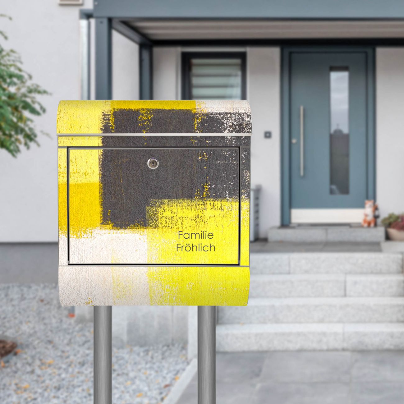 Standbriefkasten Edelstahl Abstrakt Gelb