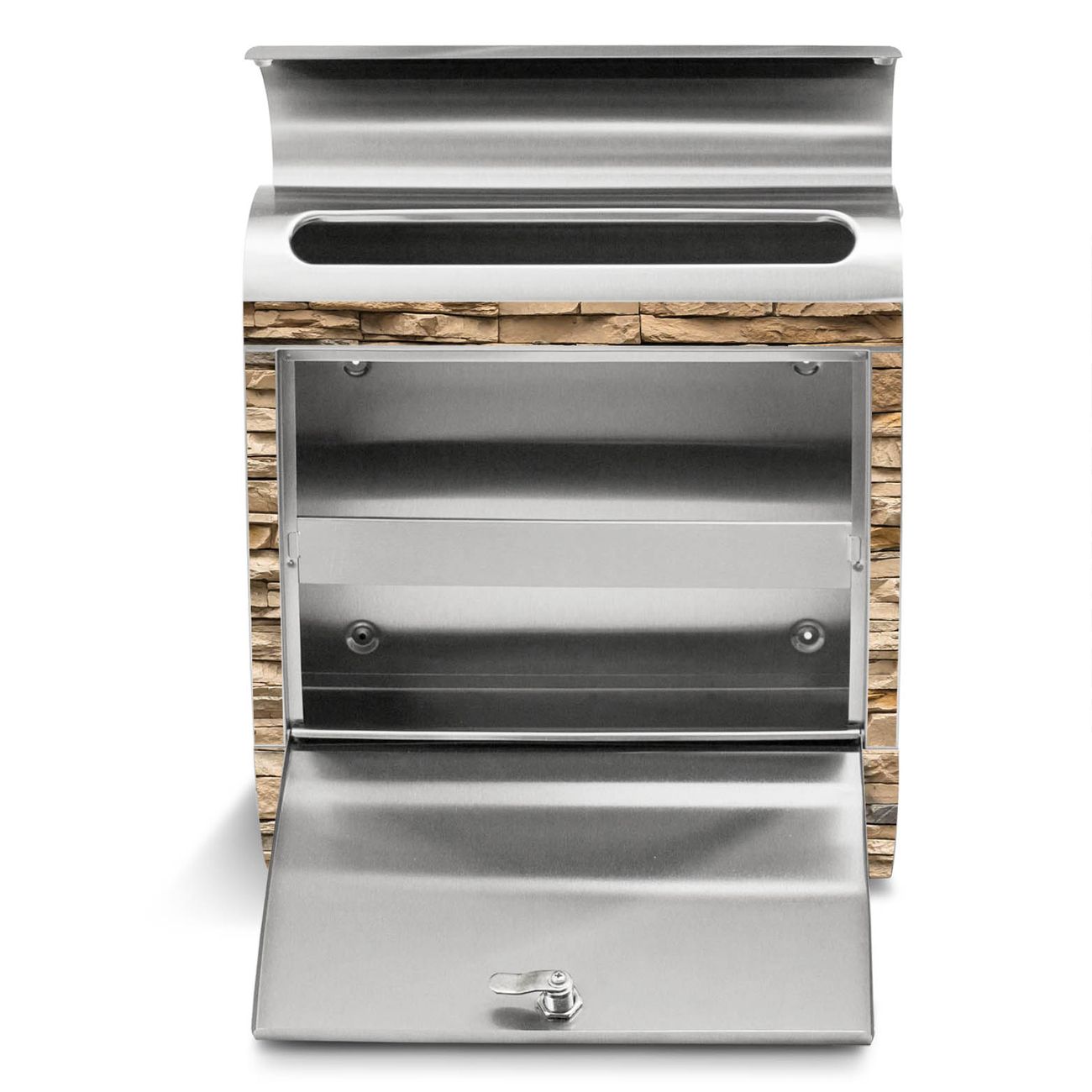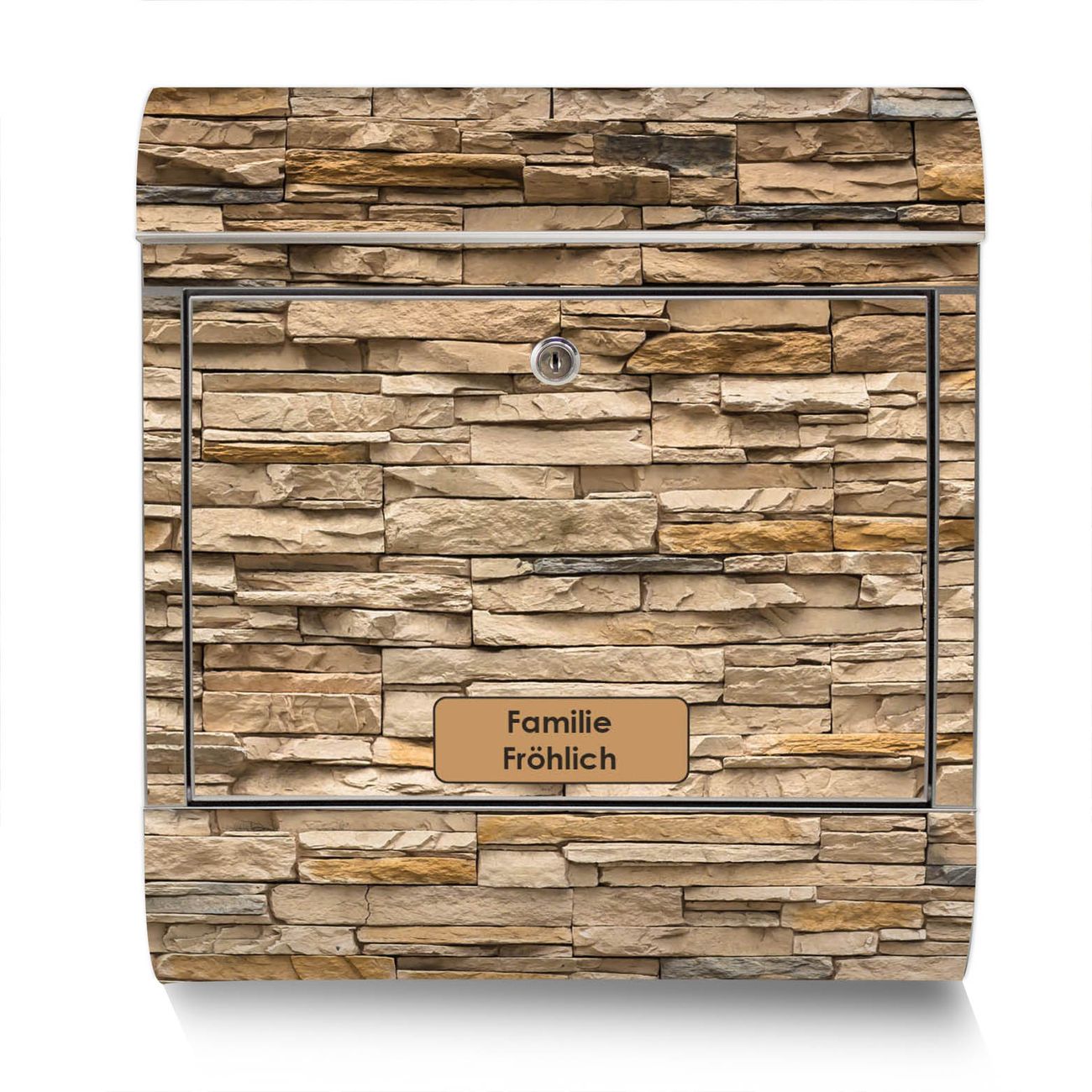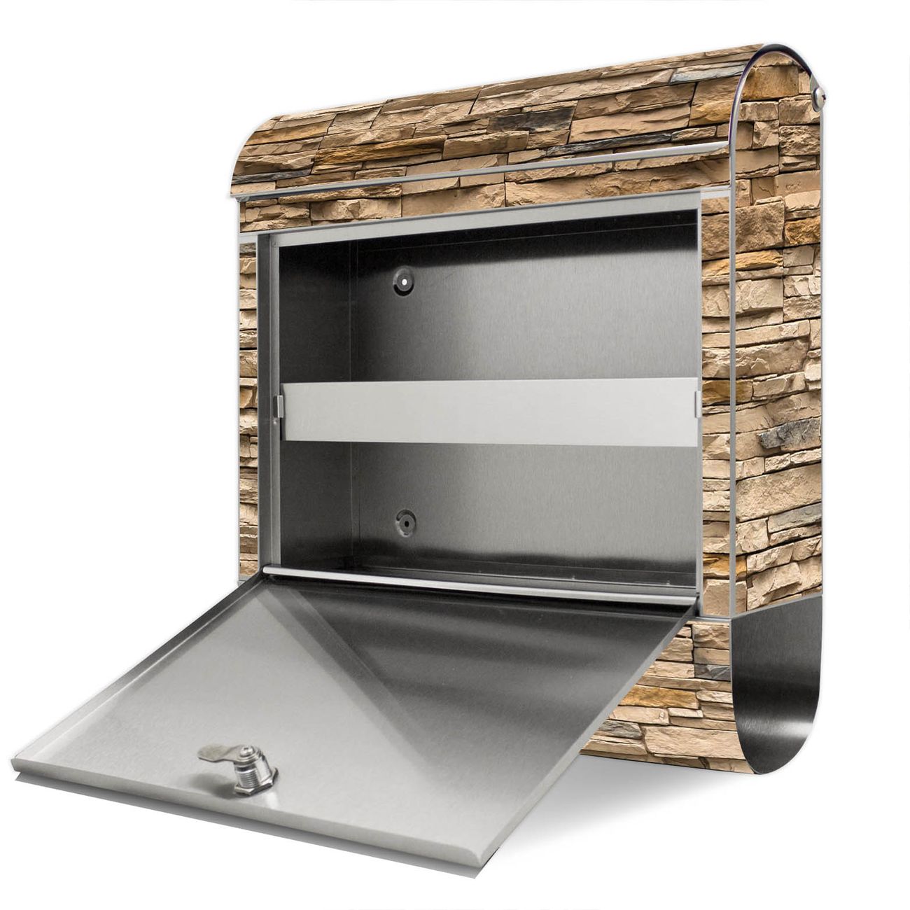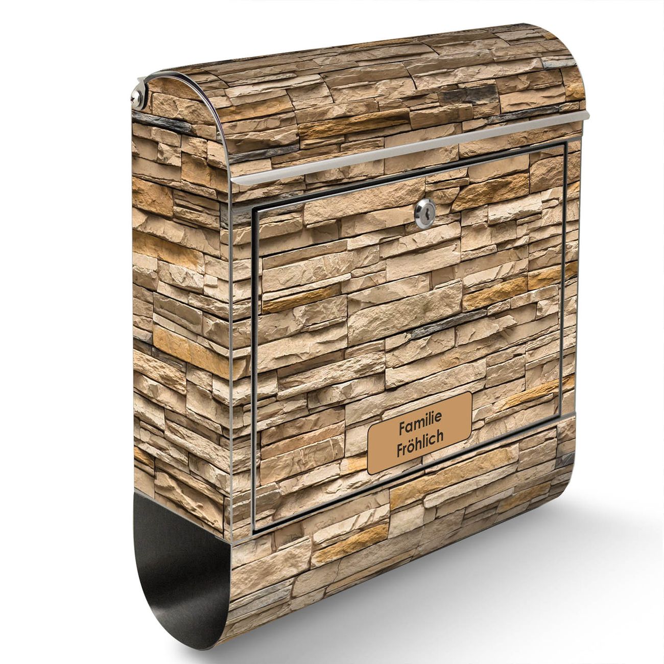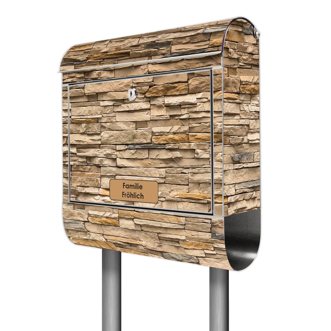 Der banjado Edelstahl Standbriefkasten mit Motiv Alte Mauer und eigenem Wunschtext bietet Ihnen mit seinem Fassungsvermögen genügend Platz auch für große A4 Sendungen. Das integrierte Zeitungsfach eignet sich hervorragend, um unkompliziert die Tageszeitung zu fassen.
