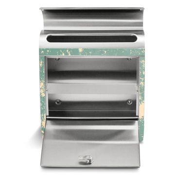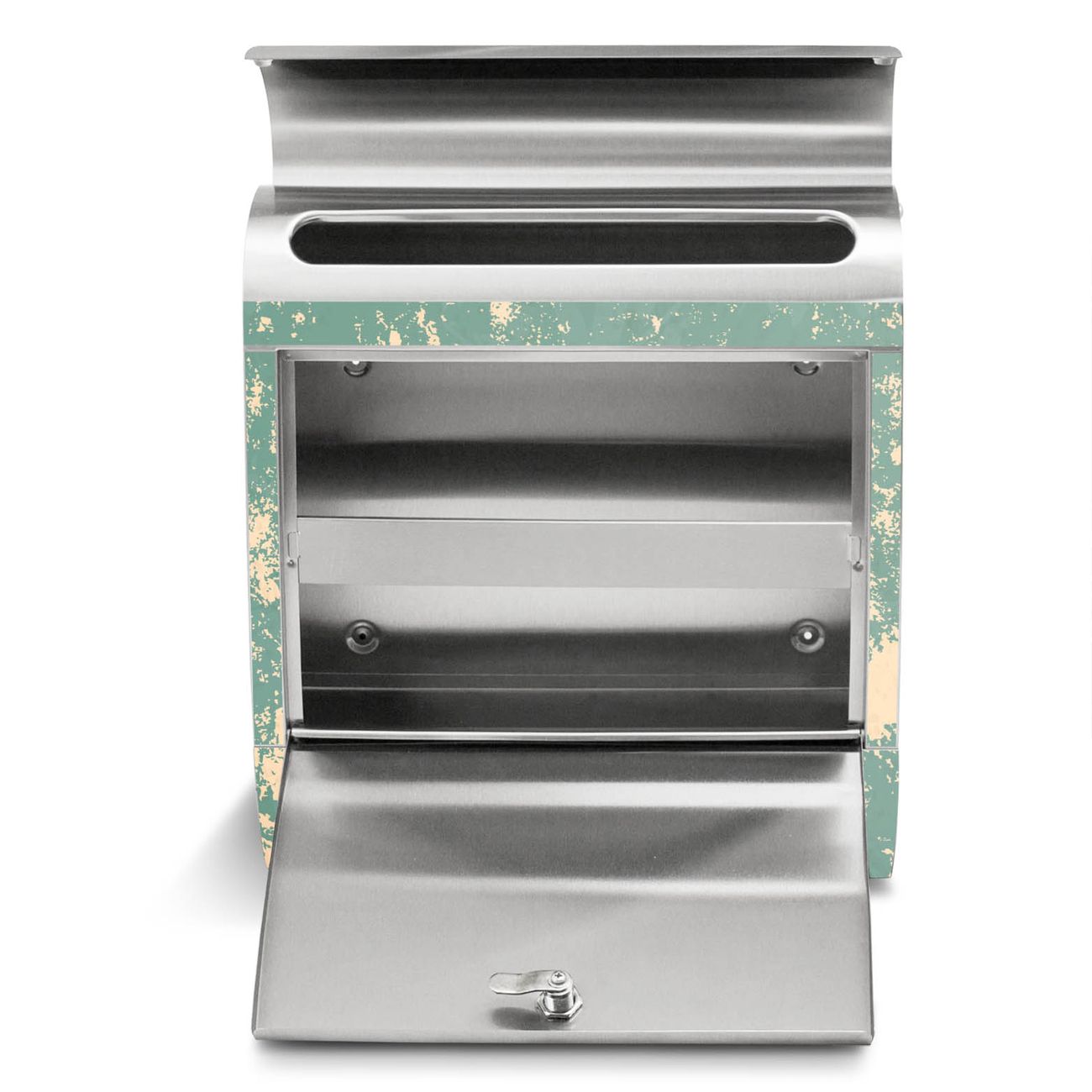 Der Motivstandbriefkasten hat ein sehr ansprechendes und ausgefallenes Design, damit entlocken Sie Ihren Nachbarn und dem Postboten ein Lächeln. Heben Sie Sich ab von der tristen grauen Masse, ohne auf Funktionalität zu verzichten. Der Briefkasten besteht aus hochwertigem 18/0 Edelstahl und die Wetter- und UV-resistenten Folie mit Altes Papier Motiv ist zusätzlich mit einem Schutzlaminat überzogen. Der Standbriefkasten wird mit Montagematerial und zwei Schlüsseln geliefert.