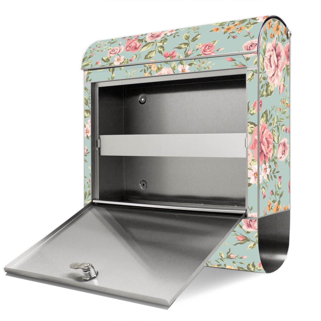 Der Motivstandbriefkasten hat ein sehr ansprechendes und ausgefallenes Design, damit entlocken Sie Ihren Nachbarn und dem Postboten ein Lächeln. Heben Sie Sich ab von der tristen grauen Masse, ohne auf Funktionalität zu verzichten. Der Briefkasten besteht aus hochwertigem 18/0 Edelstahl und die Wetter- und UV-resistenten Folie mit Altrosa Blume Motiv ist zusätzlich mit einem Schutzlaminat überzogen. Der Standbriefkasten wird mit Montagematerial und zwei Schlüsseln geliefert.