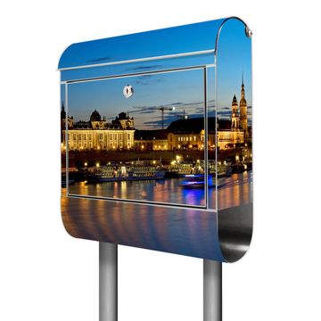 Der banjado Edelstahl Standbriefkasten mit Motiv Altstadt Dresden bietet Ihnen mit seinem Fassungsvermögen genügend Platz auch für große A4 Sendungen. Das integrierte Zeitungsfach eignet sich hervorragend, um unkompliziert die Tageszeitung zu fassen.