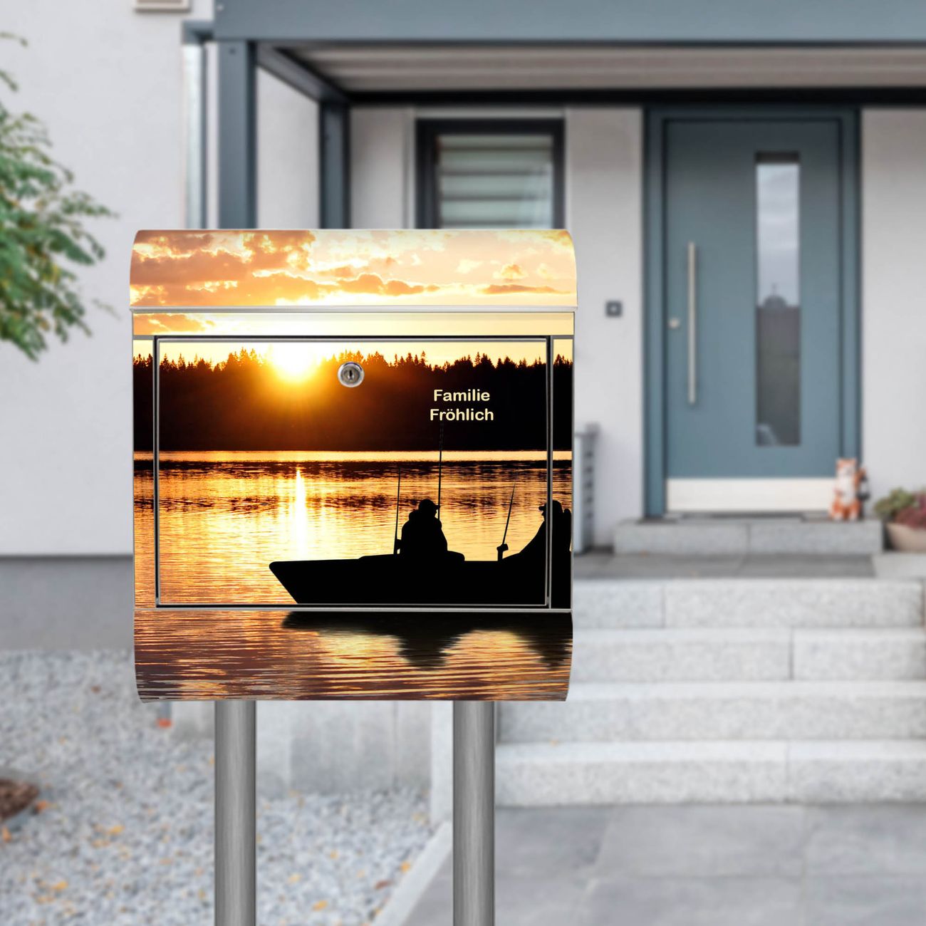Der Motivstandbriefkasten hat ein sehr ansprechendes und ausgefallenes Design, damit entlocken Sie Ihren Nachbarn und dem Postboten ein Lächeln. Heben Sie Sich ab von der tristen grauen Masse, ohne auf Funktionalität zu verzichten. Der Briefkasten besteht aus hochwertigem 18/0 Edelstahl und die Wetter- und UV-resistenten Folie mit Angler Motiv ist zusätzlich mit einem Schutzlaminat überzogen. Der Standbriefkasten wird mit Montagematerial und zwei Schlüsseln geliefert.
