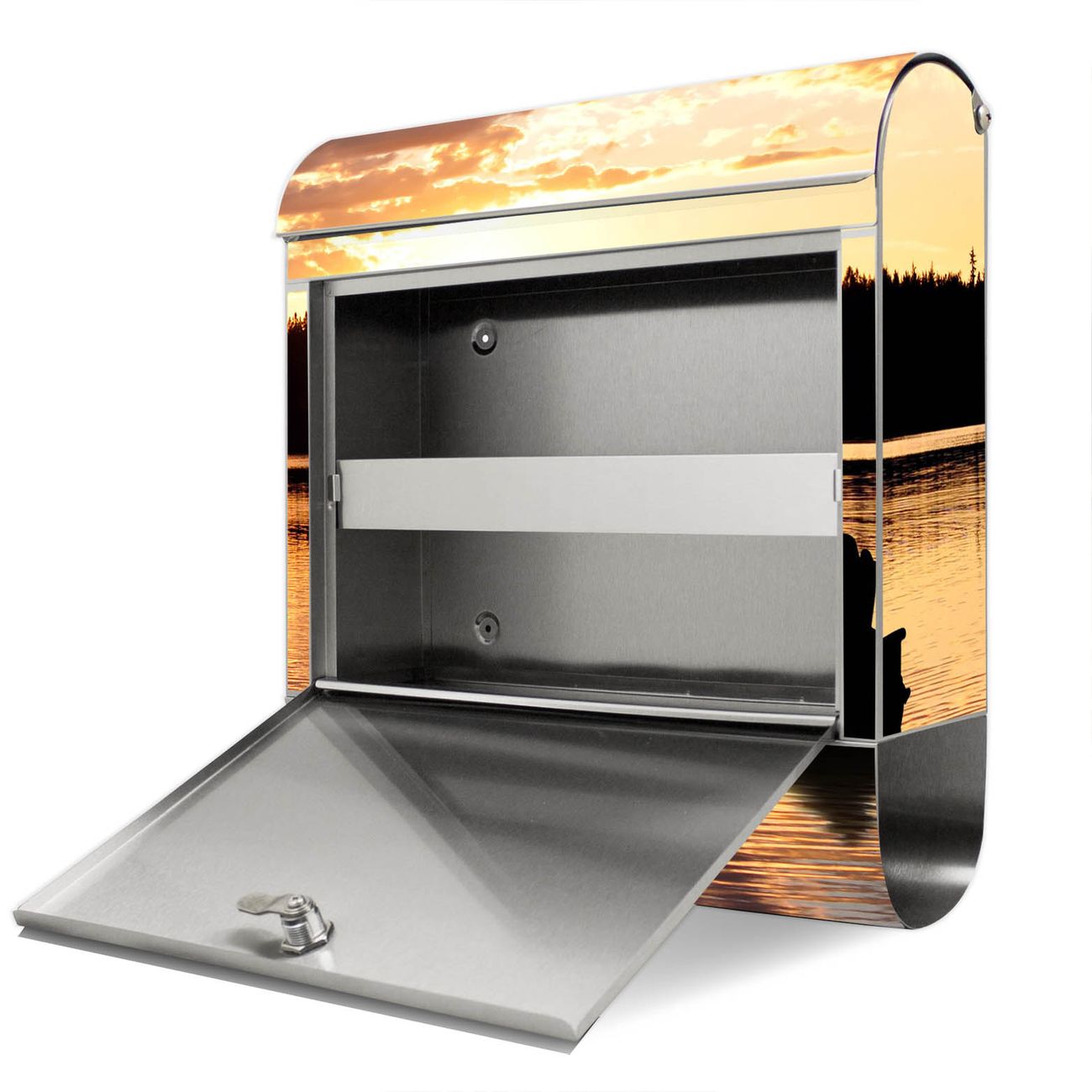 Der banjado Edelstahl Standbriefkasten mit Motiv Angler und eigenem Wunschtext bietet Ihnen mit seinem Fassungsvermögen genügend Platz auch für große A4 Sendungen. Das integrierte Zeitungsfach eignet sich hervorragend, um unkompliziert die Tageszeitung zu fassen.