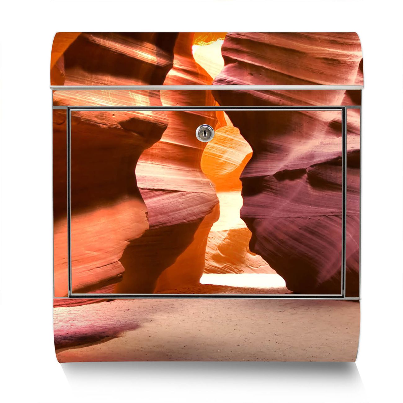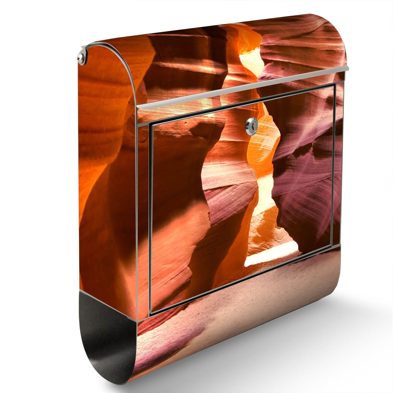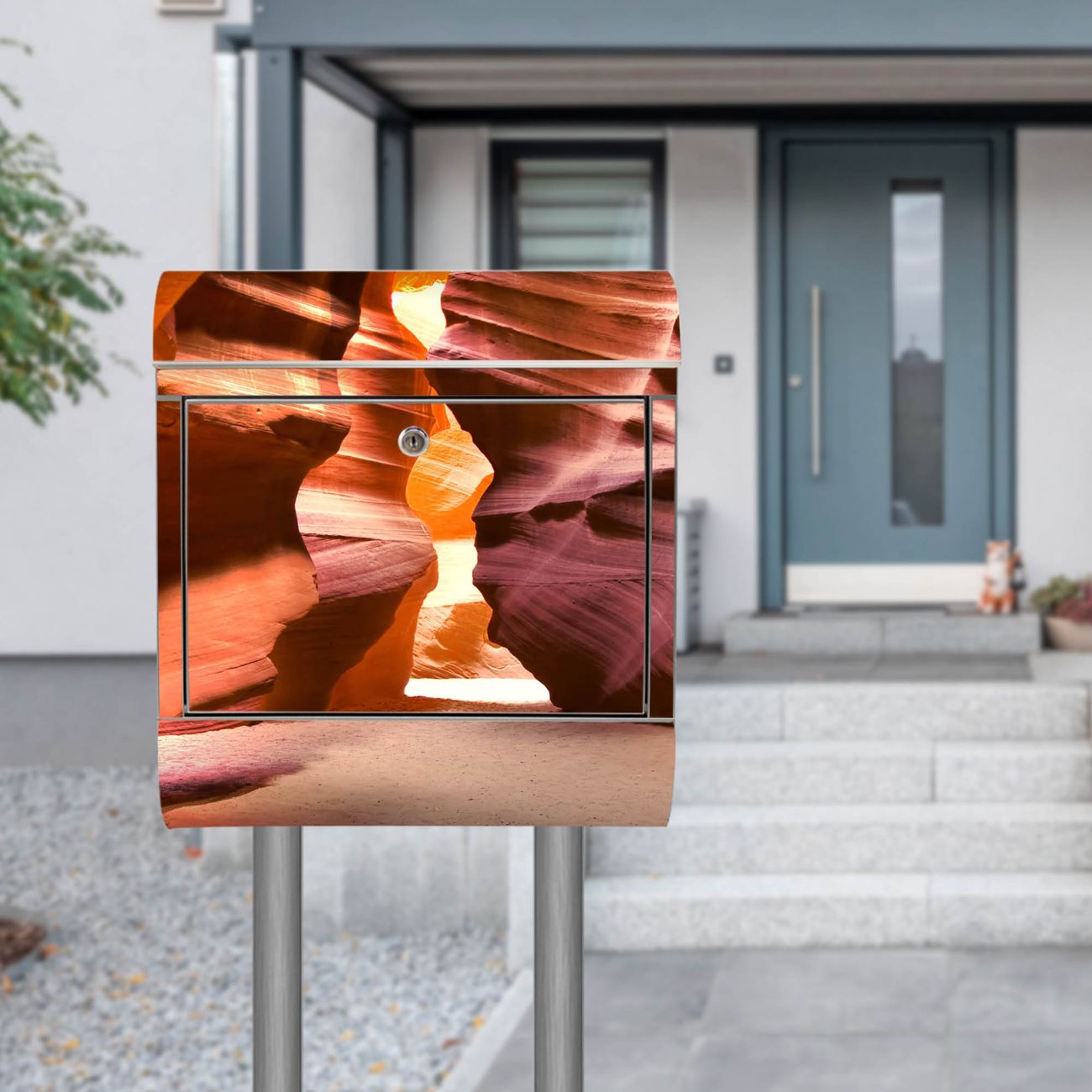 Der banjado Edelstahl Standbriefkasten mit Motiv Antelope Canyon bietet Ihnen mit seinem Fassungsvermögen genügend Platz auch für große A4 Sendungen. Das integrierte Zeitungsfach eignet sich hervorragend, um unkompliziert die Tageszeitung zu fassen.