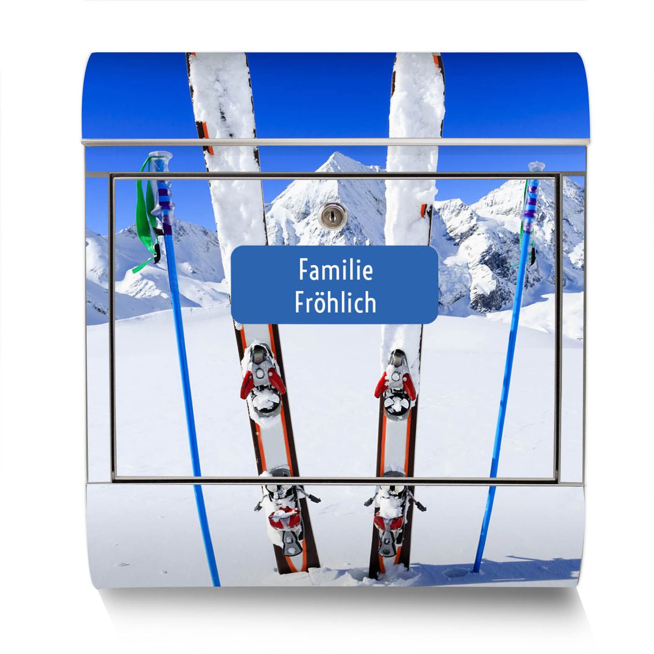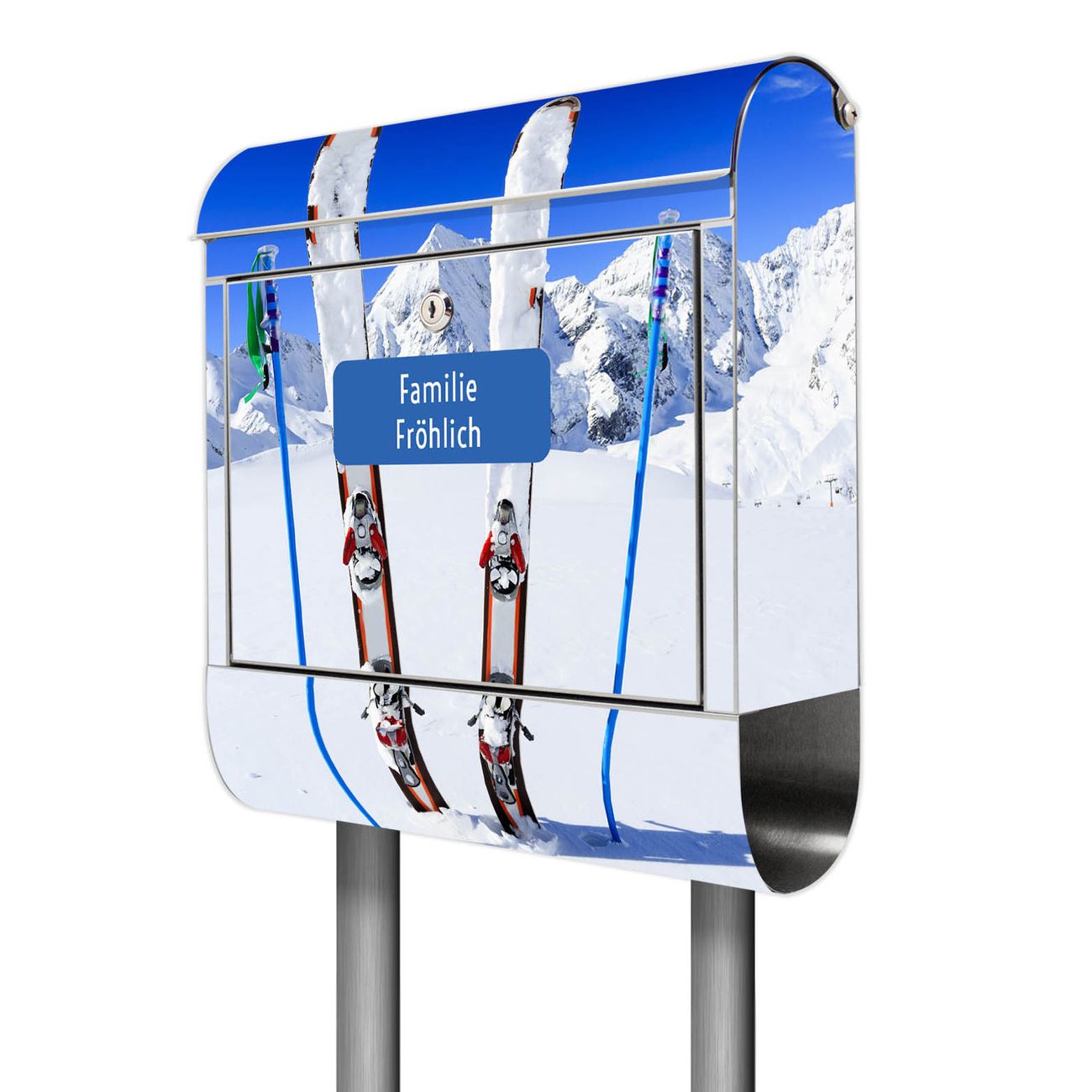 Der Motivstandbriefkasten hat ein sehr ansprechendes und ausgefallenes Design, damit entlocken Sie Ihren Nachbarn und dem Postboten ein Lächeln. Heben Sie Sich ab von der tristen grauen Masse, ohne auf Funktionalität zu verzichten. Der Briefkasten besteht aus hochwertigem 18/0 Edelstahl und die Wetter- und UV-resistenten Folie mit Apres Ski Motiv ist zusätzlich mit einem Schutzlaminat überzogen. Der Standbriefkasten wird mit Montagematerial und zwei Schlüsseln geliefert.