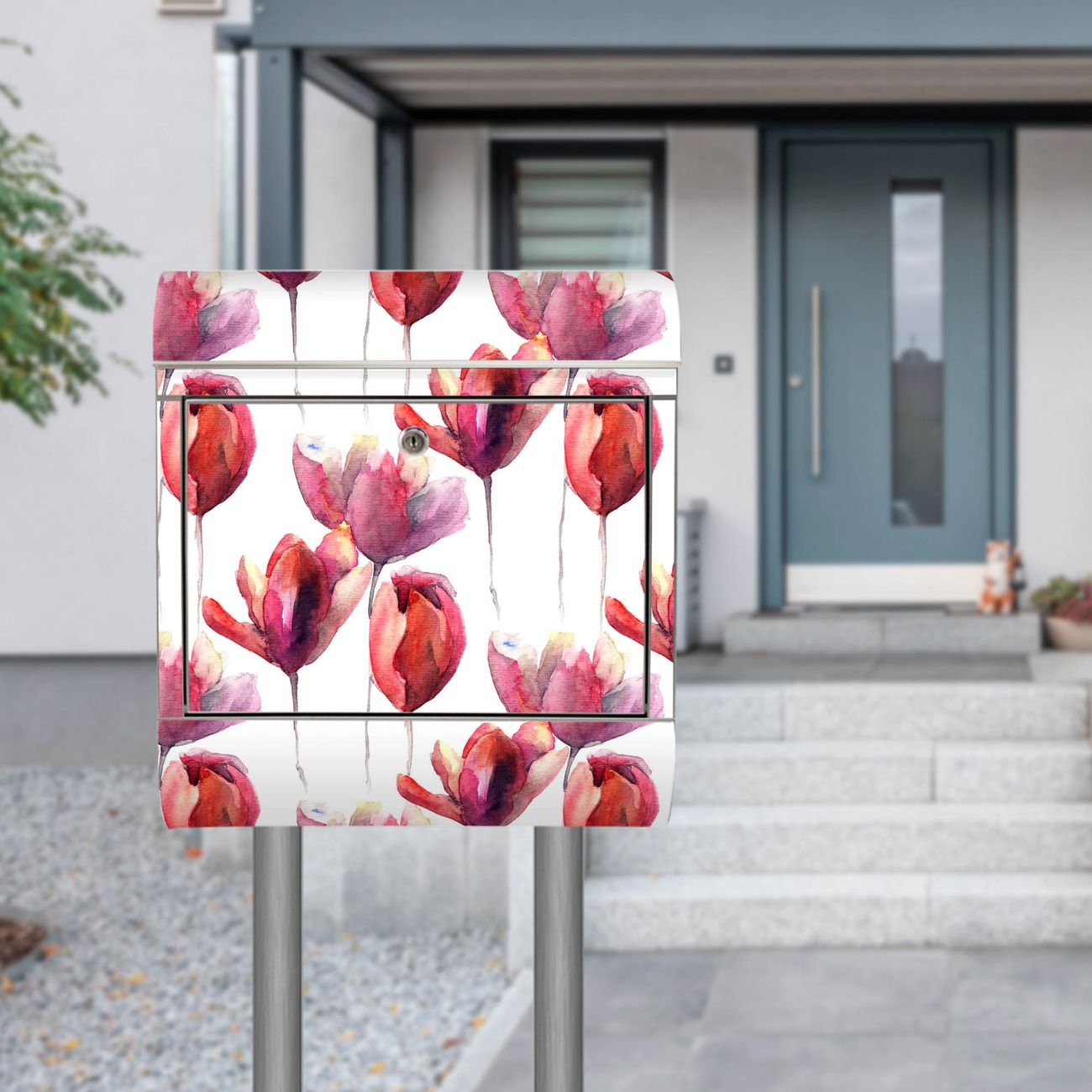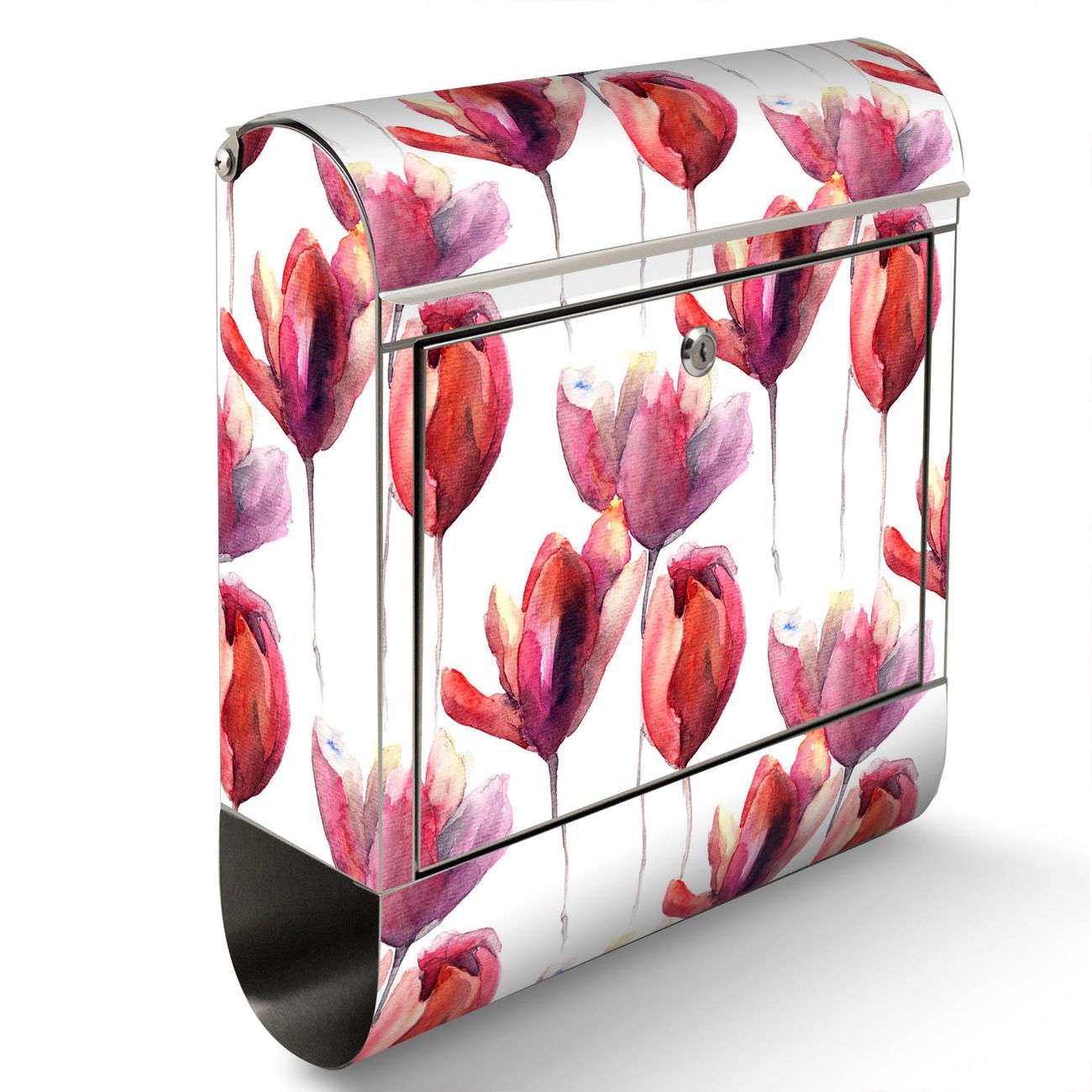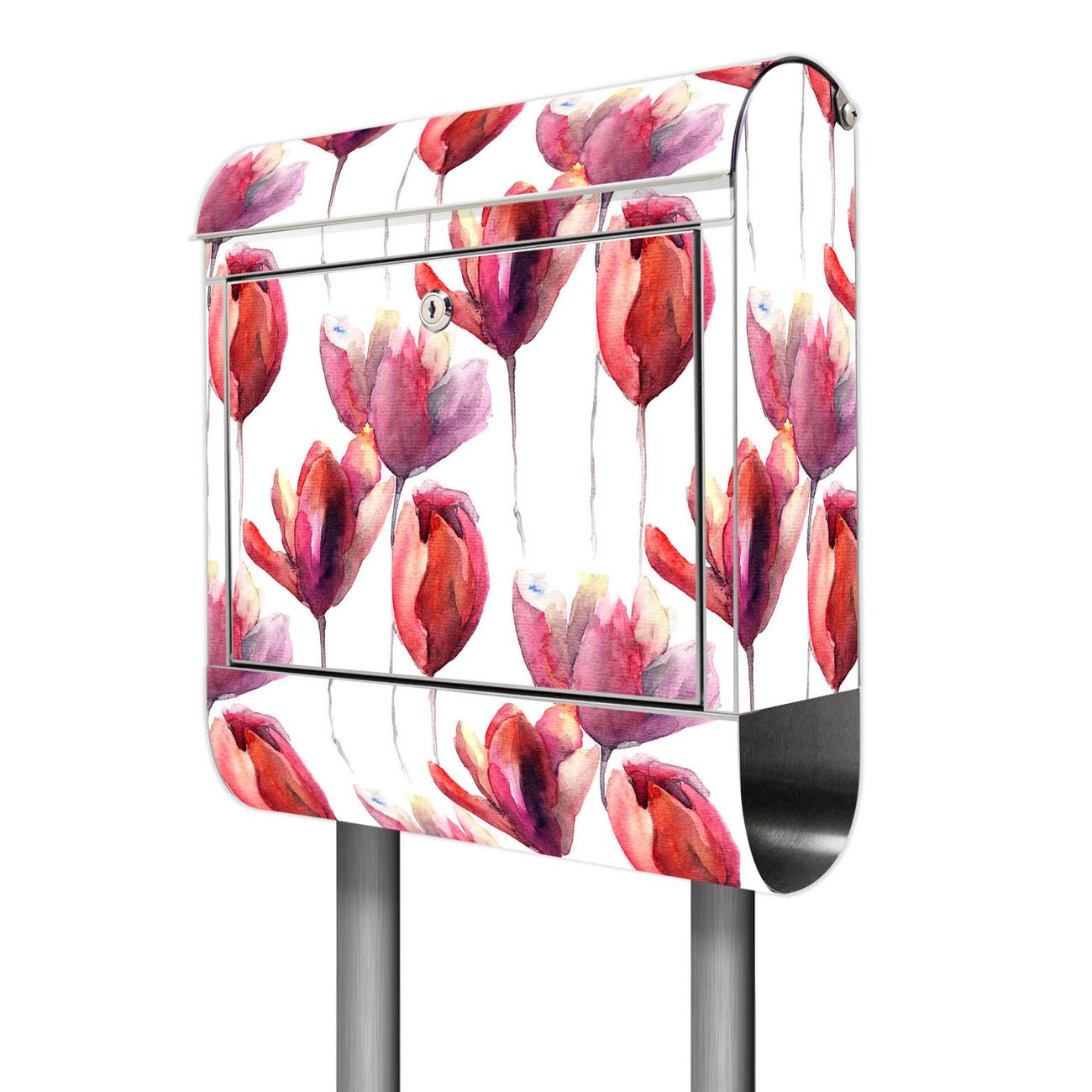 Standbriefkasten Edelstahl Aquarell Tulpen