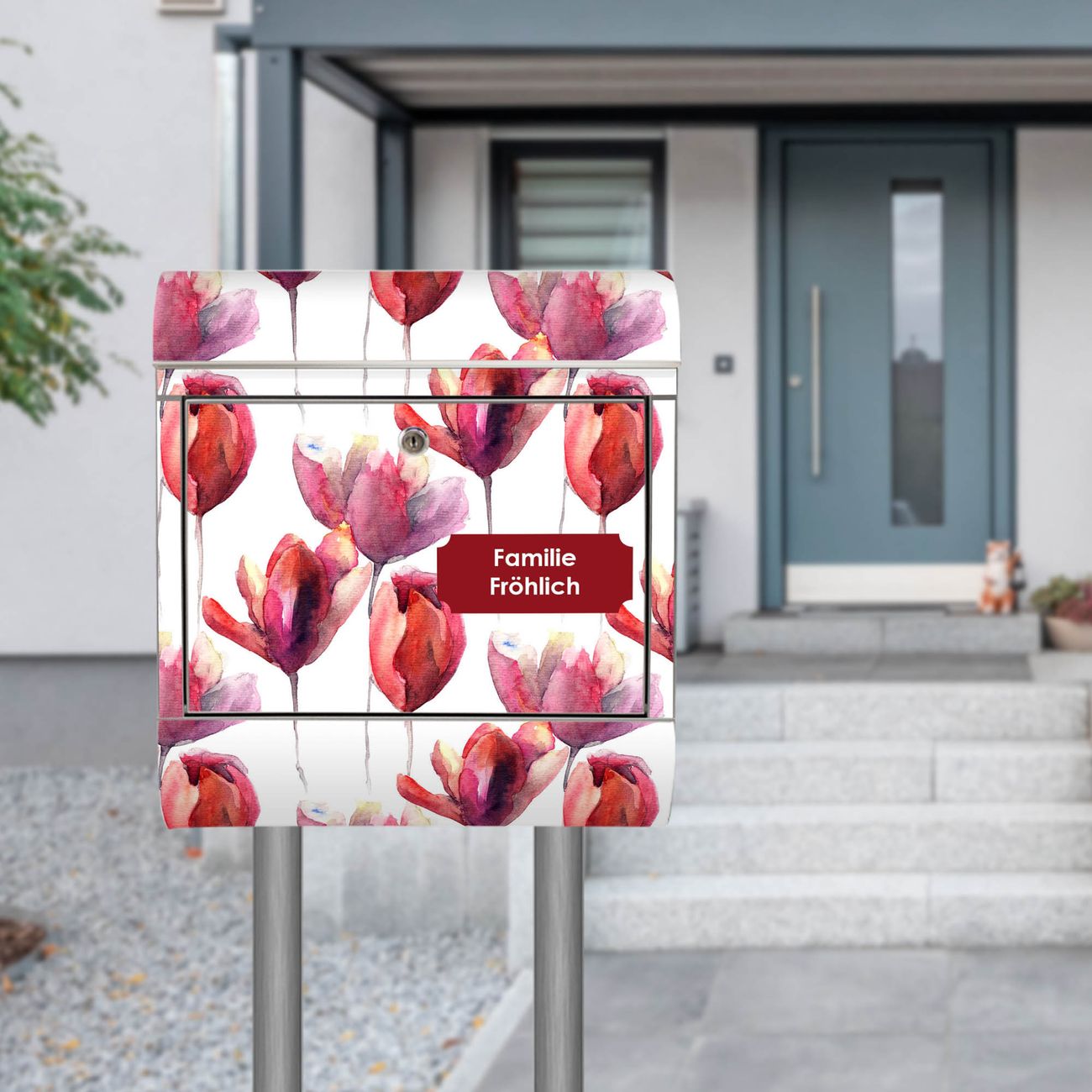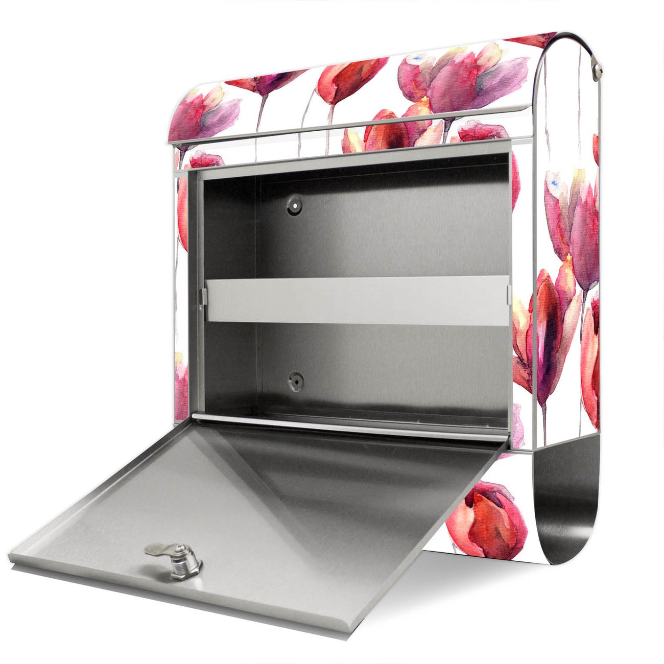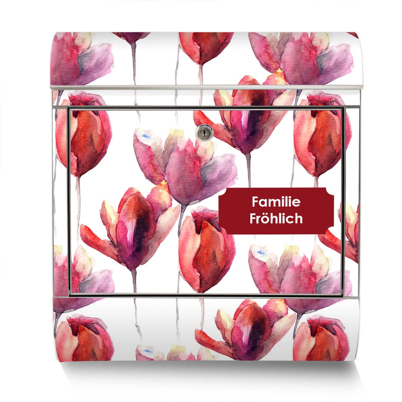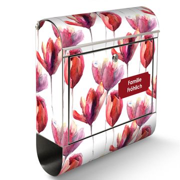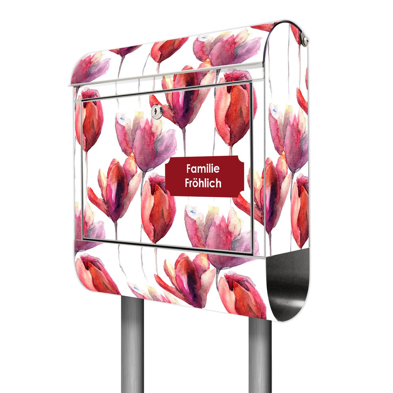 Standbriefkasten Edelstahl Aquarell Tulpen