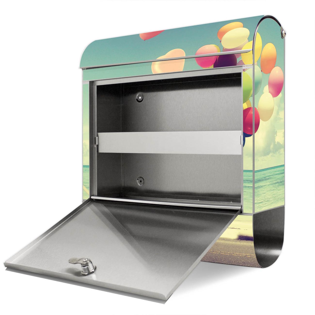 Der Motivstandbriefkasten hat ein sehr ansprechendes und ausgefallenes Design, damit entlocken Sie Ihren Nachbarn und dem Postboten ein Lächeln. Heben Sie Sich ab von der tristen grauen Masse, ohne auf Funktionalität zu verzichten. Der Briefkasten besteht aus hochwertigem 18/0 Edelstahl und die Wetter- und UV-resistenten Folie mit Auf Und Davon Motiv ist zusätzlich mit einem Schutzlaminat überzogen. Der Standbriefkasten wird mit Montagematerial und zwei Schlüsseln geliefert.