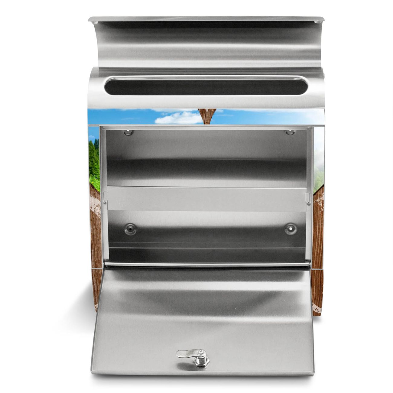 Wir empfehlen Ihnen, den Standbriefkasten einzubetonieren, um einen optimalen Stand zu gewährleisten. Die Größe des Standbriefkastens bietet genügend Platz für Sendungen aller Art, das hochwertige Edelstahl ist rostfrei und die Motivfolie absolut wetterfest.