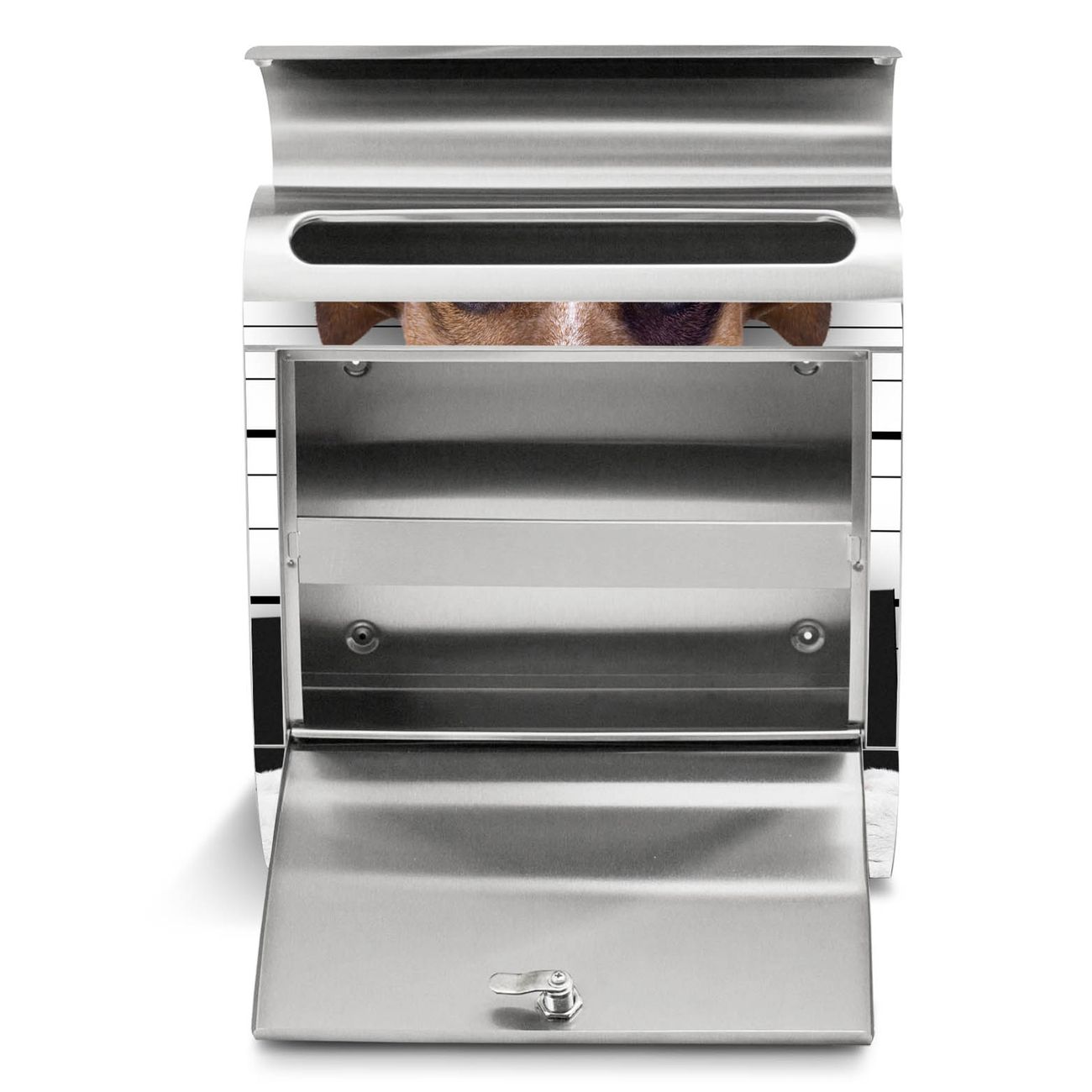Der banjado Edelstahl Standbriefkasten mit Motiv Bad Dog Jack Russel bietet Ihnen mit seinem Fassungsvermögen genügend Platz auch für große A4 Sendungen. Das integrierte Zeitungsfach eignet sich hervorragend, um unkompliziert die Tageszeitung zu fassen.