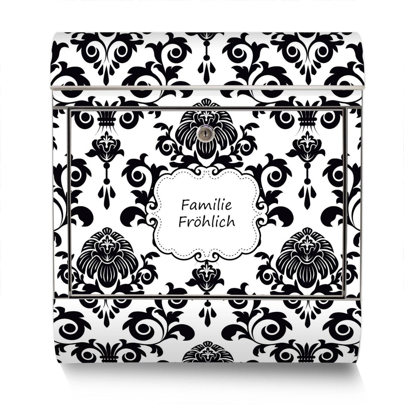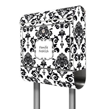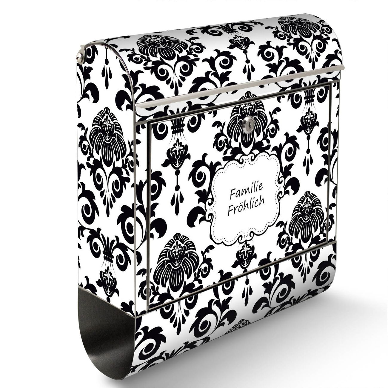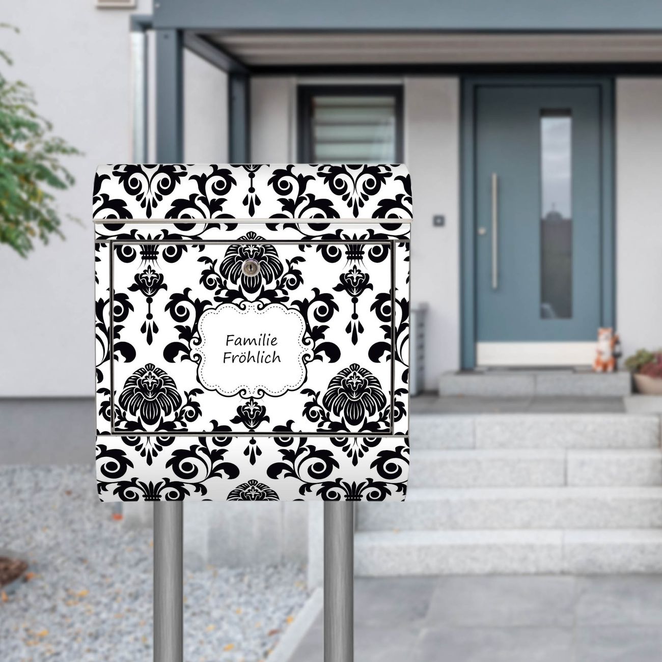 Der banjado Edelstahl Standbriefkasten mit Motiv Barock und eigenem Wunschtext bietet Ihnen mit seinem Fassungsvermögen genügend Platz auch für große A4 Sendungen. Das integrierte Zeitungsfach eignet sich hervorragend, um unkompliziert die Tageszeitung zu fassen.