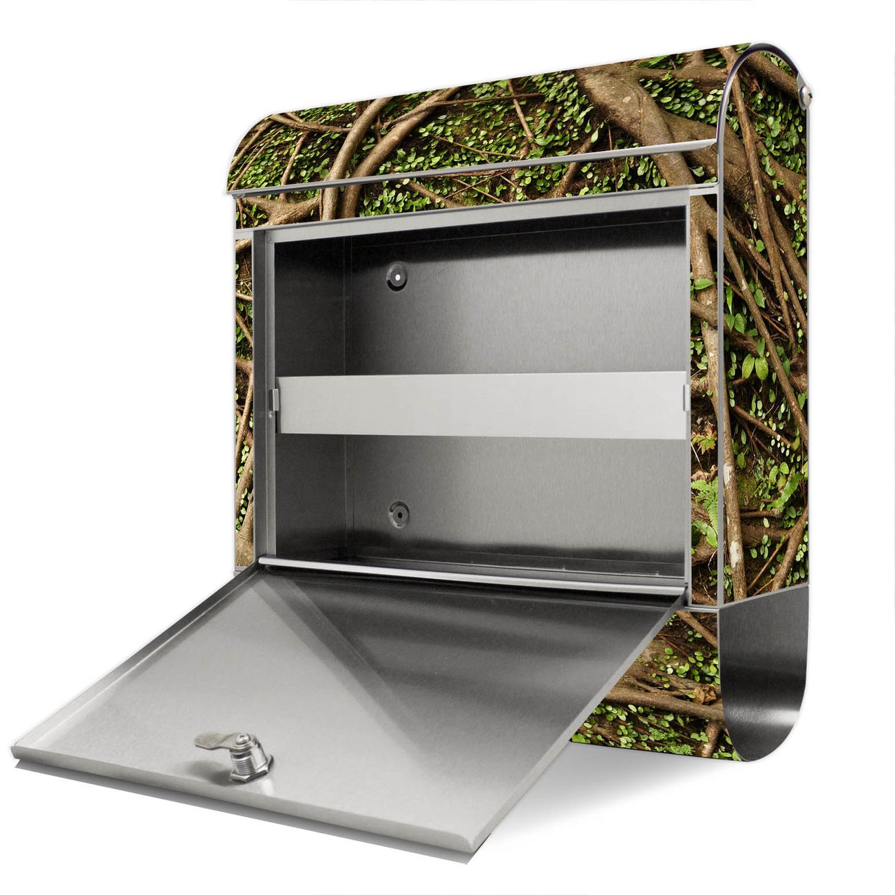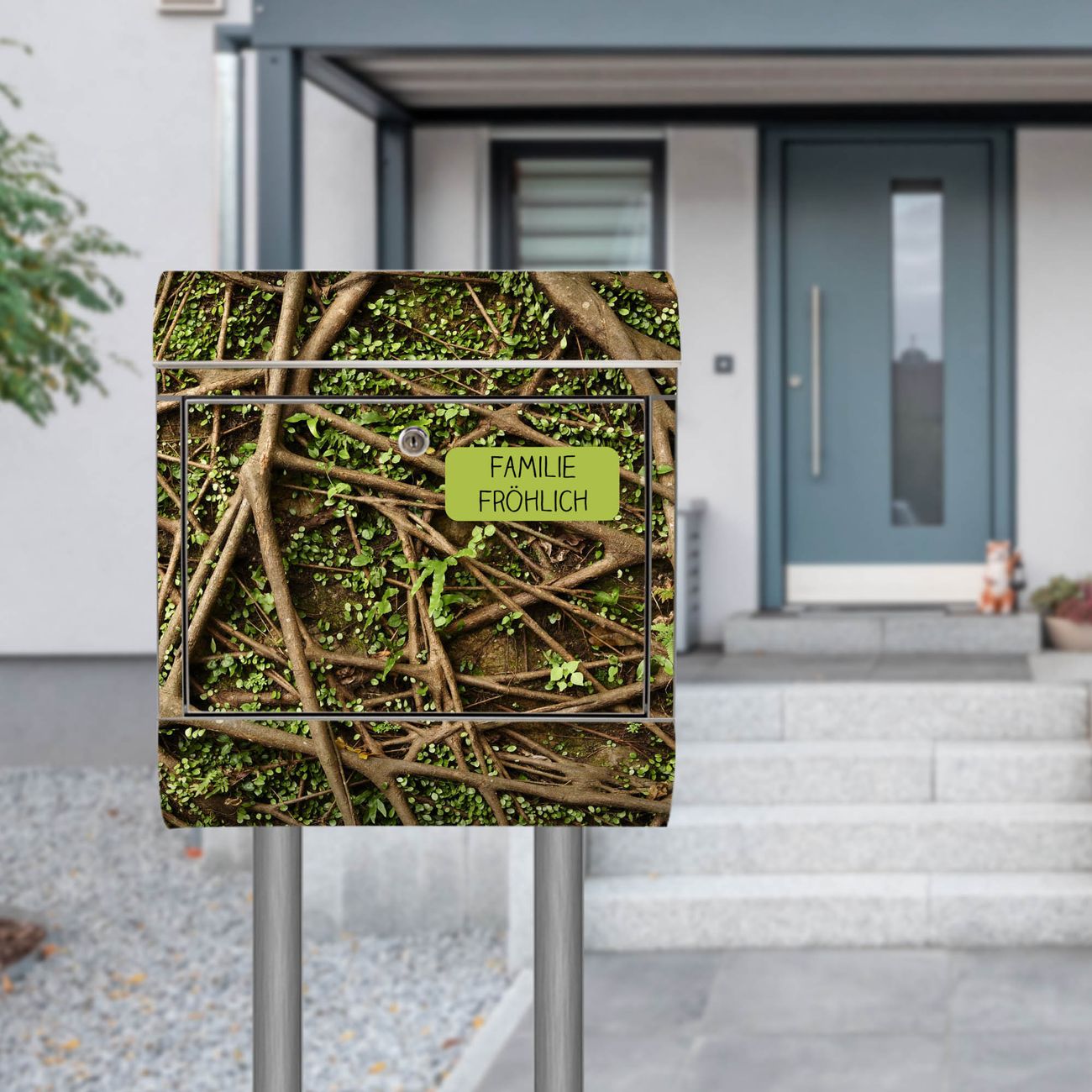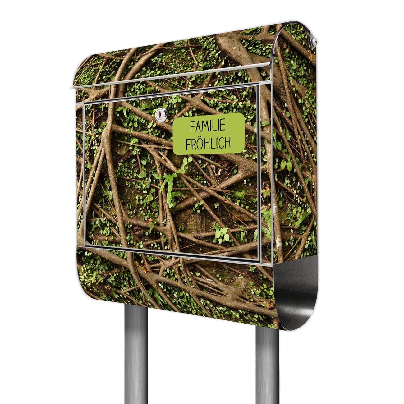 Der Motivstandbriefkasten hat ein sehr ansprechendes und ausgefallenes Design, damit entlocken Sie Ihren Nachbarn und dem Postboten ein Lächeln. Heben Sie Sich ab von der tristen grauen Masse, ohne auf Funktionalität zu verzichten. Der Briefkasten besteht aus hochwertigem 18/0 Edelstahl und die Wetter- und UV-resistenten Folie mit Baumwurzel Motiv ist zusätzlich mit einem Schutzlaminat überzogen. Der Standbriefkasten wird mit Montagematerial und zwei Schlüsseln geliefert.