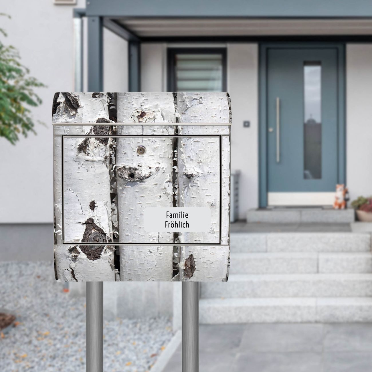 Standbriefkasten Edelstahl Birkenrinde