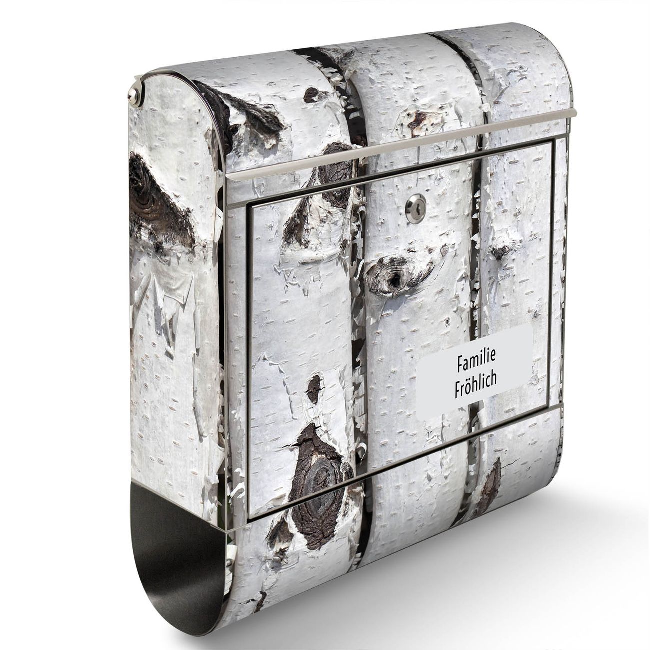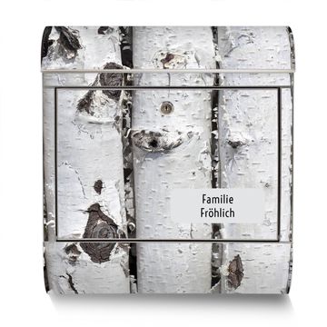 Der banjado Edelstahl Standbriefkasten mit Motiv Birkenrinde und eigenem Wunschtext bietet Ihnen mit seinem Fassungsvermögen genügend Platz auch für große A4 Sendungen. Das integrierte Zeitungsfach eignet sich hervorragend, um unkompliziert die Tageszeitung zu fassen.