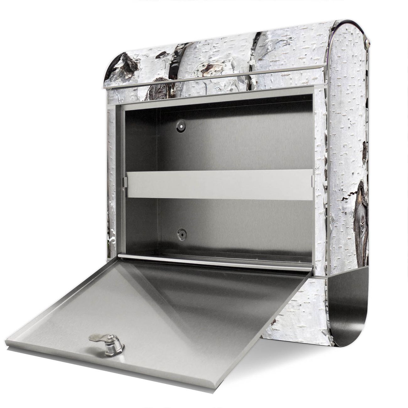 Der Motivstandbriefkasten hat ein sehr ansprechendes und ausgefallenes Design, damit entlocken Sie Ihren Nachbarn und dem Postboten ein Lächeln. Heben Sie Sich ab von der tristen grauen Masse, ohne auf Funktionalität zu verzichten. Der Briefkasten besteht aus hochwertigem 18/0 Edelstahl und die Wetter- und UV-resistenten Folie mit Birkenrinde Motiv ist zusätzlich mit einem Schutzlaminat überzogen. Der Standbriefkasten wird mit Montagematerial und zwei Schlüsseln geliefert.