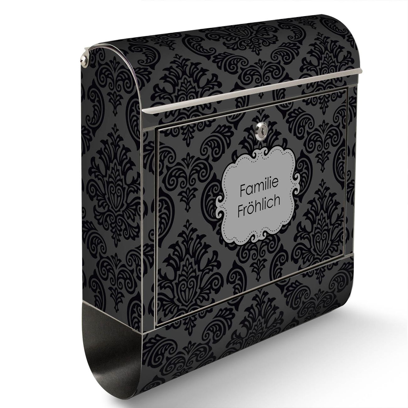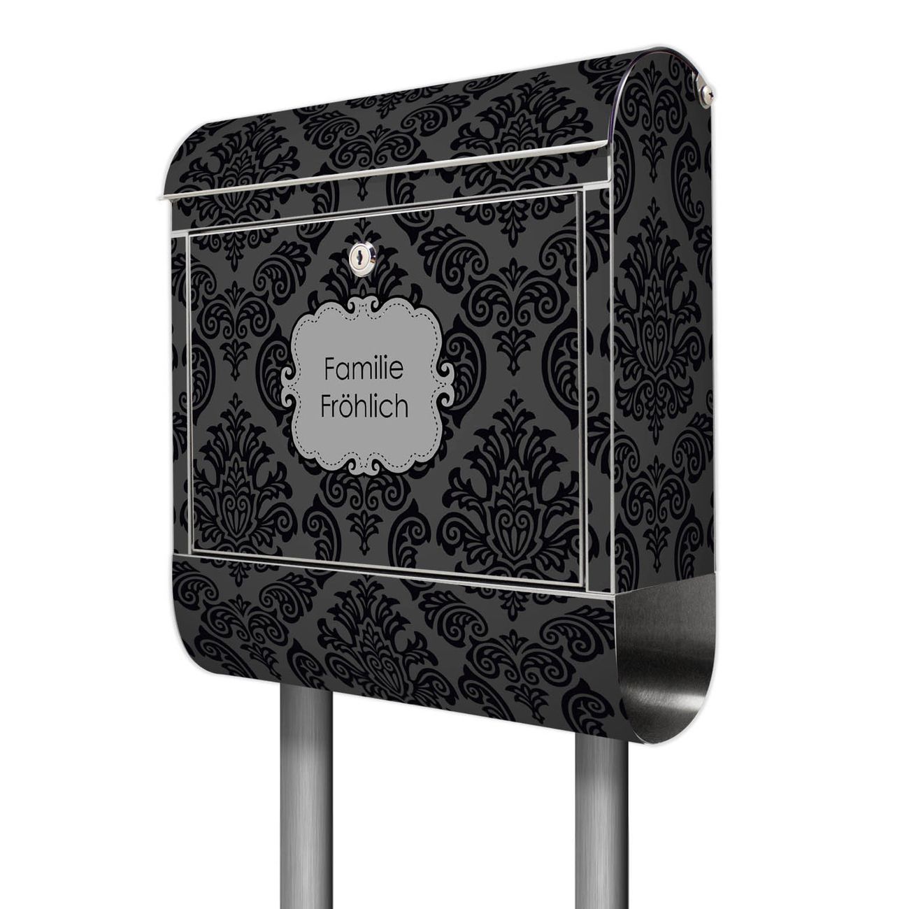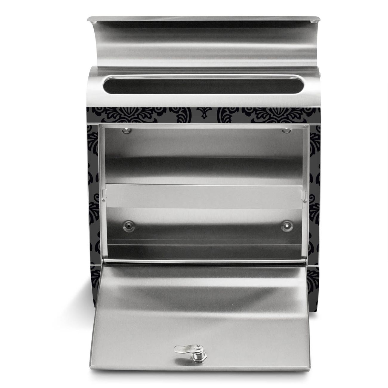 Der banjado Edelstahl Standbriefkasten mit Motiv Black Deluxe und eigenem Wunschtext bietet Ihnen mit seinem Fassungsvermögen genügend Platz auch für große A4 Sendungen. Das integrierte Zeitungsfach eignet sich hervorragend, um unkompliziert die Tageszeitung zu fassen.