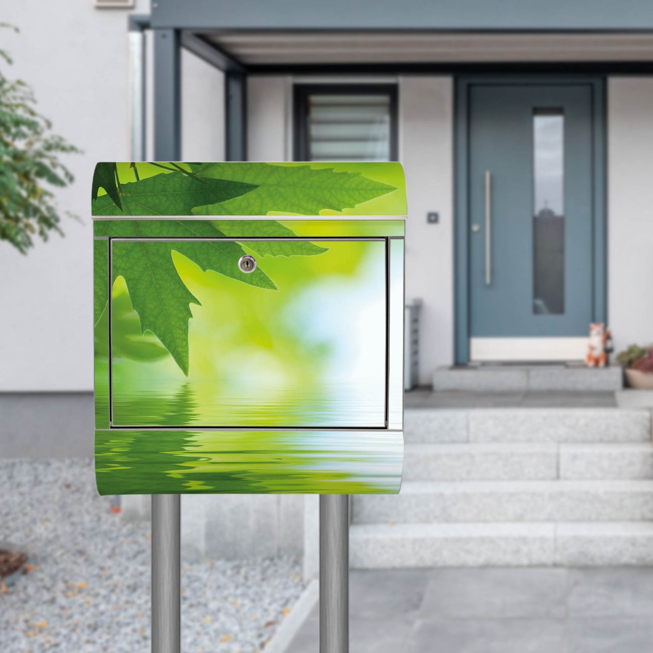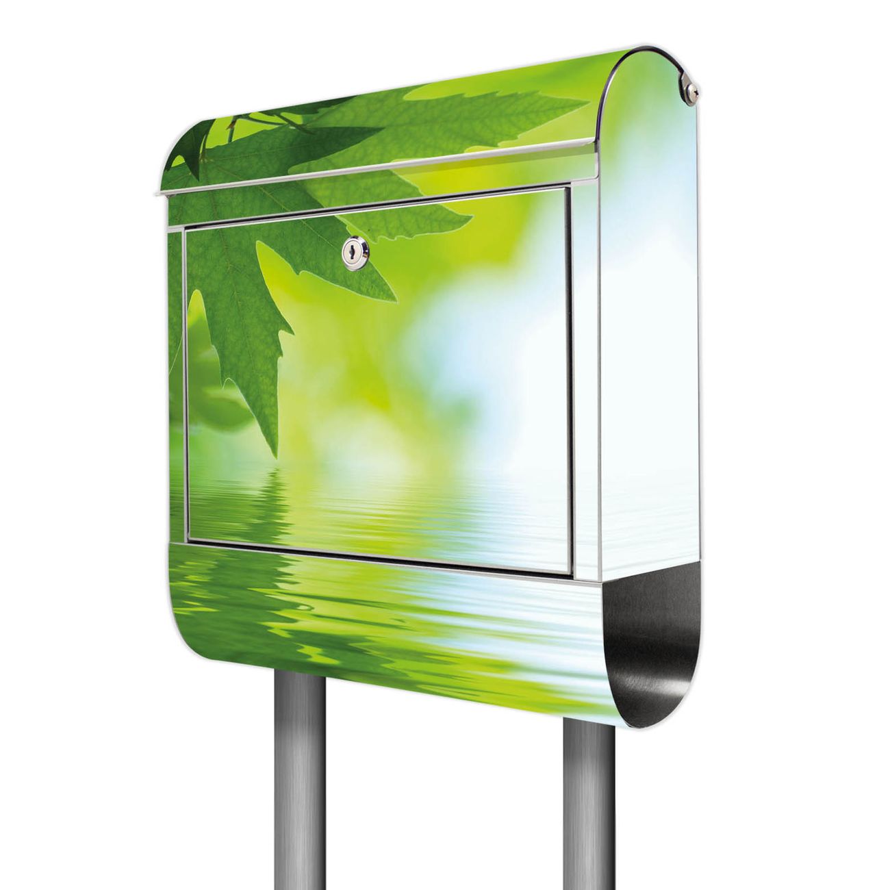 Der Motivstandbriefkasten hat ein sehr ansprechendes und ausgefallenes Design, damit entlocken Sie Ihren Nachbarn und dem Postboten ein Lächeln. Heben Sie Sich ab von der tristen grauen Masse, ohne auf Funktionalität zu verzichten. Der Briefkasten besteht aus hochwertigem 18/0 Edelstahl und die Wetter- und UV-resistenten Folie mit Blättertraum Motiv ist zusätzlich mit einem Schutzlaminat überzogen. Der Standbriefkasten wird mit Montagematerial und zwei Schlüsseln geliefert.