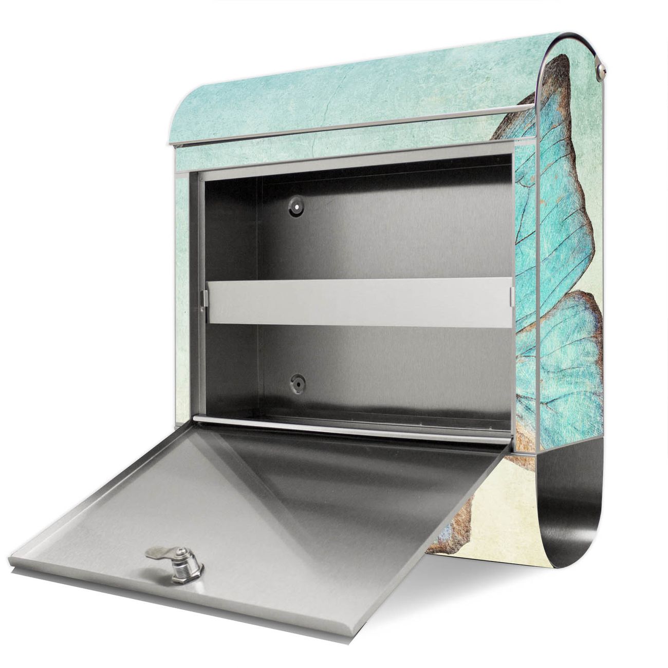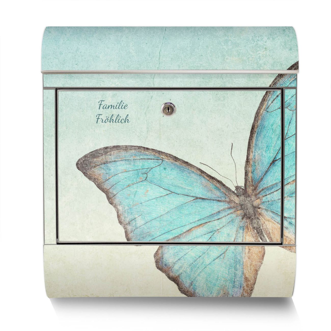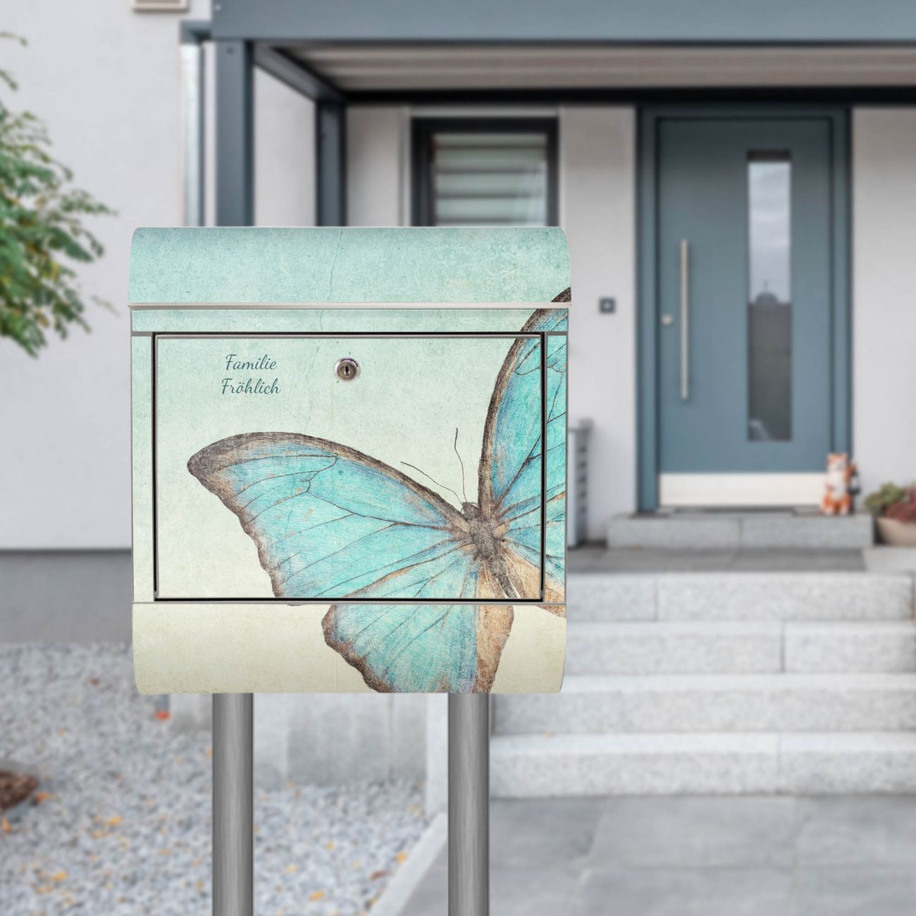 Standbriefkasten Edelstahl Blaue Schmetterlinge
