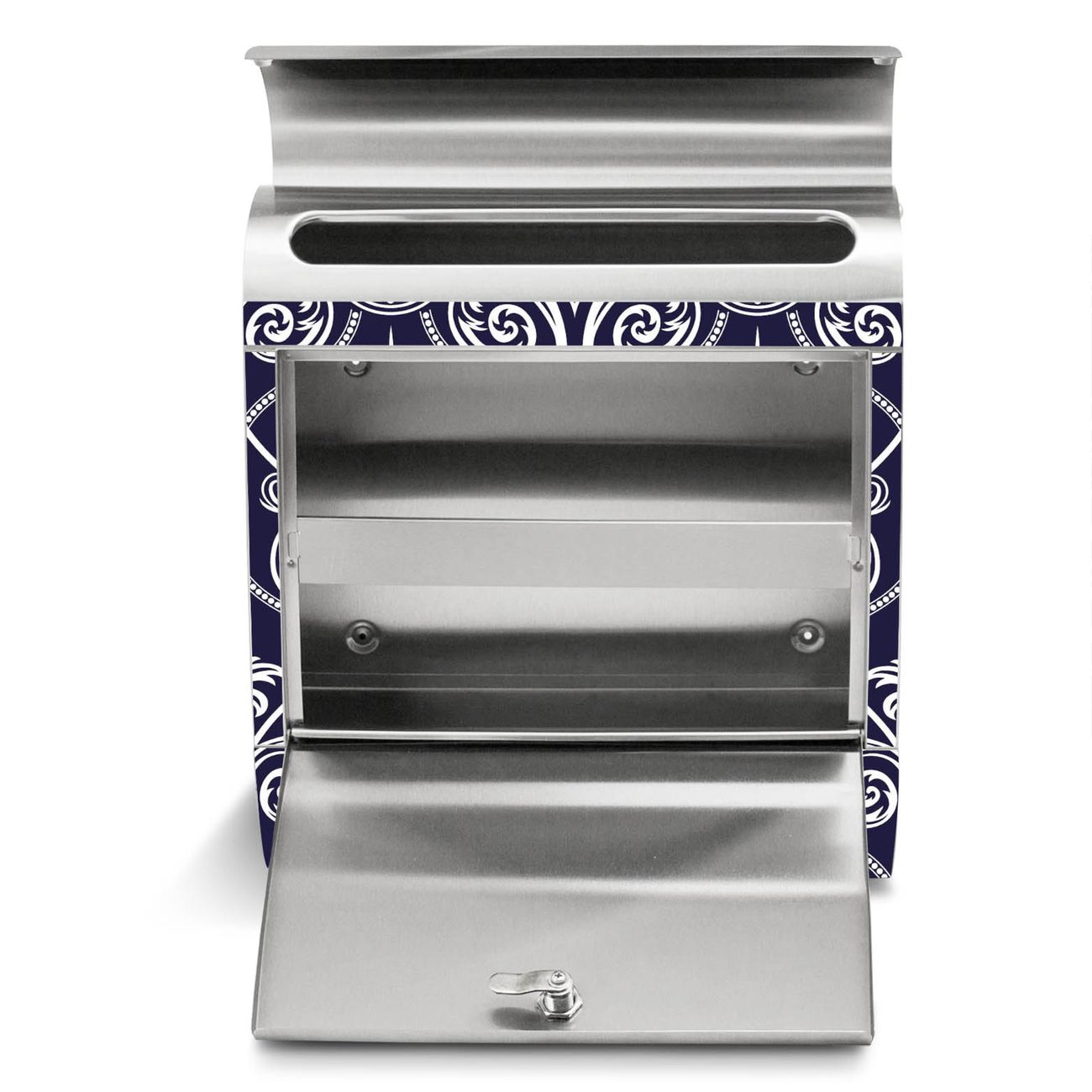 Der banjado Edelstahl Standbriefkasten mit Motiv Blaue Tapete und eigenem Wunschtext bietet Ihnen mit seinem Fassungsvermögen genügend Platz auch für große A4 Sendungen. Das integrierte Zeitungsfach eignet sich hervorragend, um unkompliziert die Tageszeitung zu fassen.