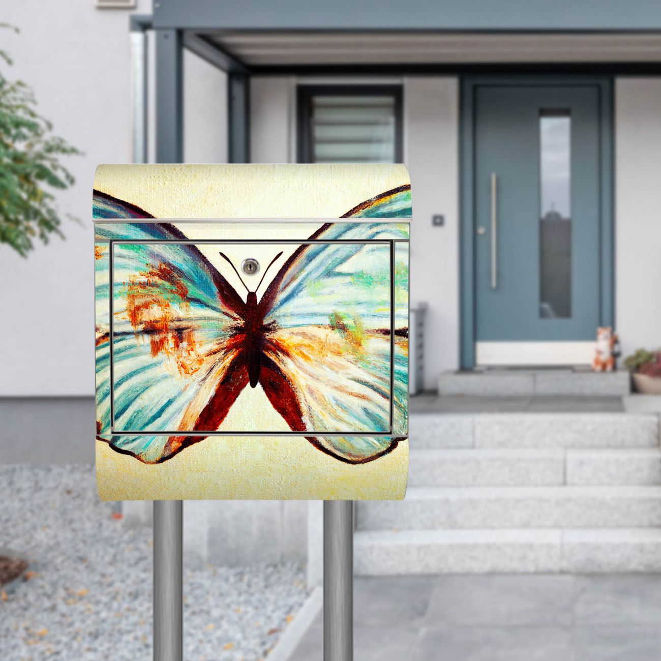 Standbriefkasten Edelstahl Blauer Falter