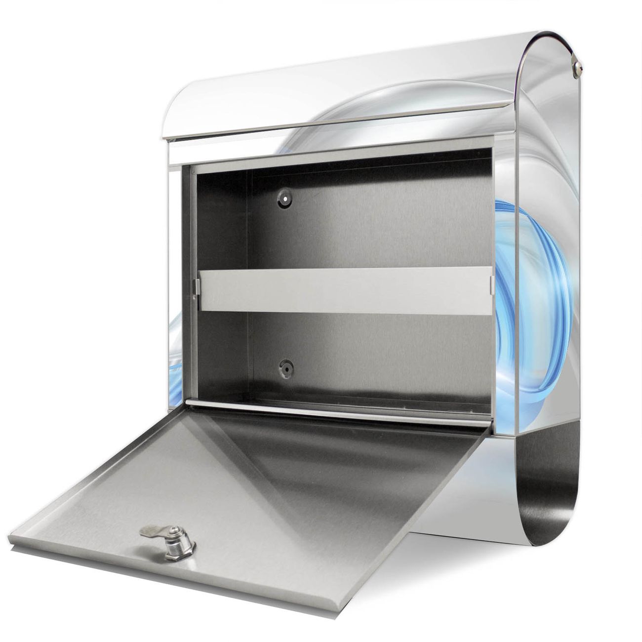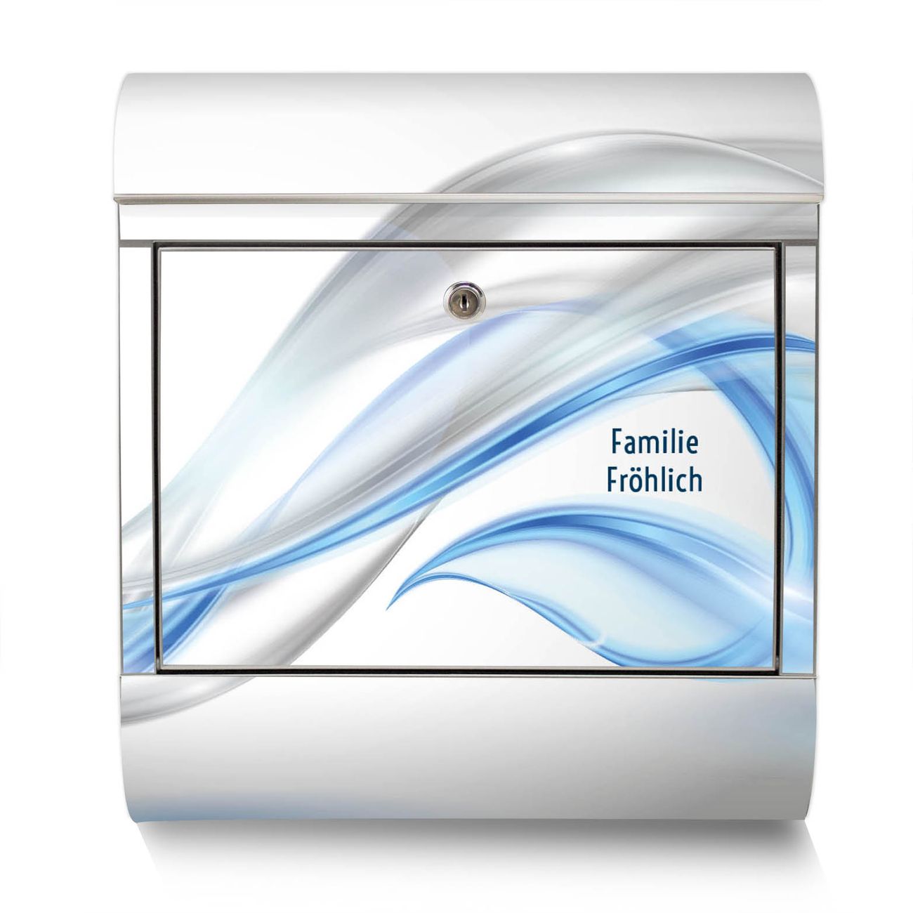 Der Motivstandbriefkasten hat ein sehr ansprechendes und ausgefallenes Design, damit entlocken Sie Ihren Nachbarn und dem Postboten ein Lächeln. Heben Sie Sich ab von der tristen grauen Masse, ohne auf Funktionalität zu verzichten. Der Briefkasten besteht aus hochwertigem 18/0 Edelstahl und die Wetter- und UV-resistenten Folie mit Blauer Schleier Motiv ist zusätzlich mit einem Schutzlaminat überzogen. Der Standbriefkasten wird mit Montagematerial und zwei Schlüsseln geliefert.