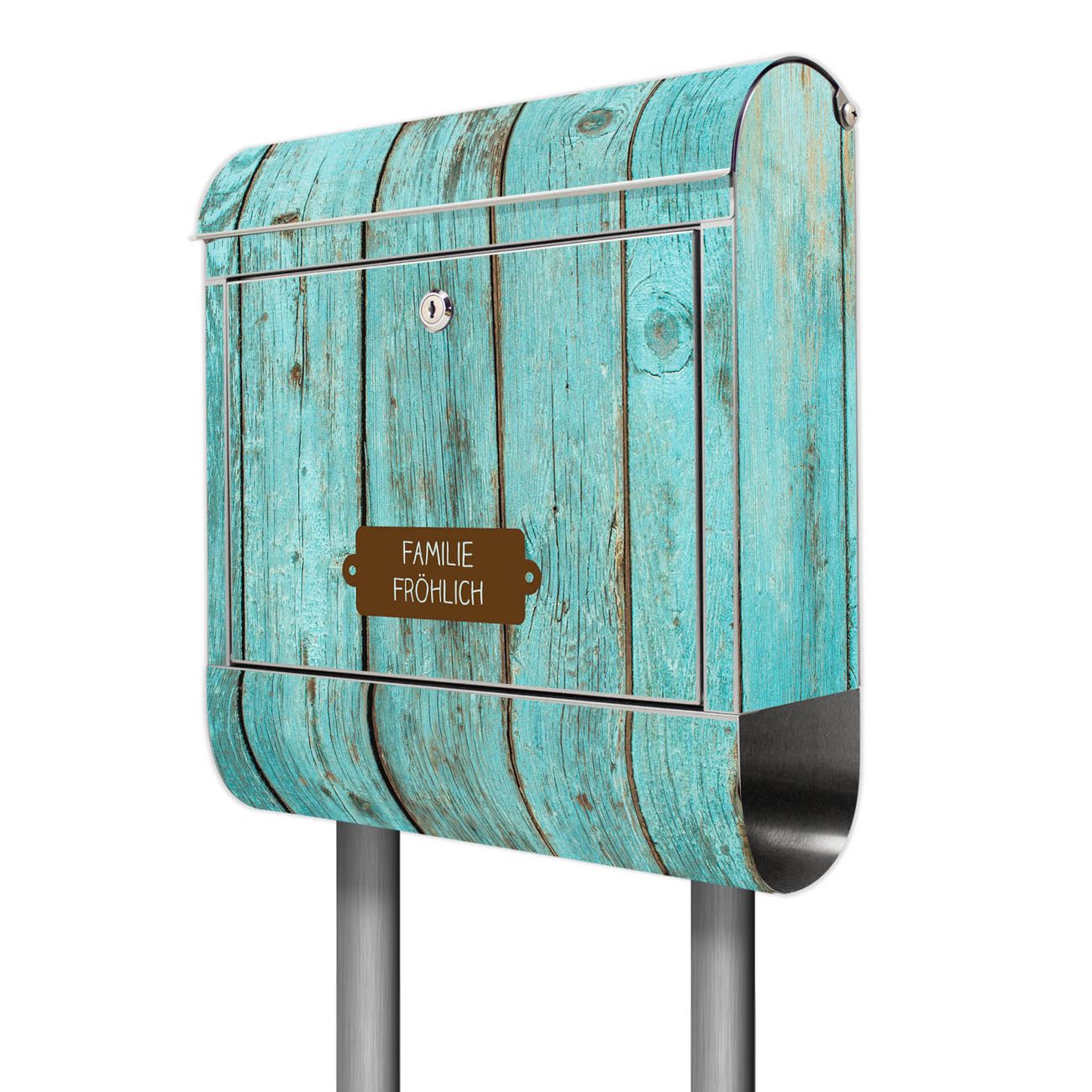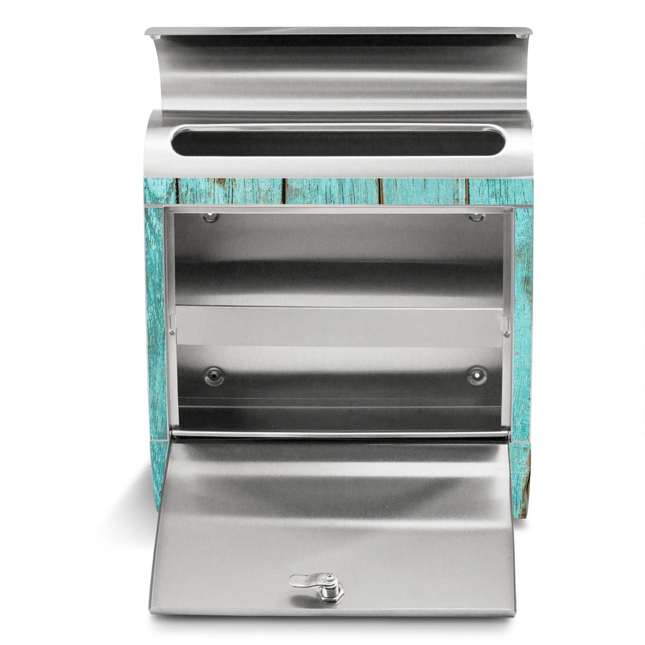 Der Motivstandbriefkasten hat ein sehr ansprechendes und ausgefallenes Design, damit entlocken Sie Ihren Nachbarn und dem Postboten ein Lächeln. Heben Sie Sich ab von der tristen grauen Masse, ohne auf Funktionalität zu verzichten. Der Briefkasten besteht aus hochwertigem 18/0 Edelstahl und die Wetter- und UV-resistenten Folie mit Blaues Holz Motiv ist zusätzlich mit einem Schutzlaminat überzogen. Der Standbriefkasten wird mit Montagematerial und zwei Schlüsseln geliefert.