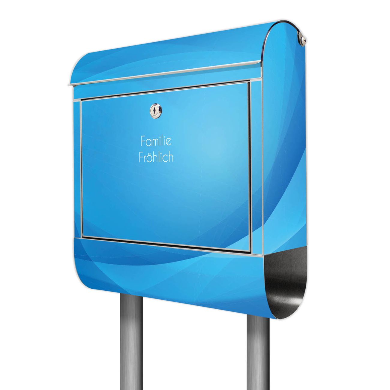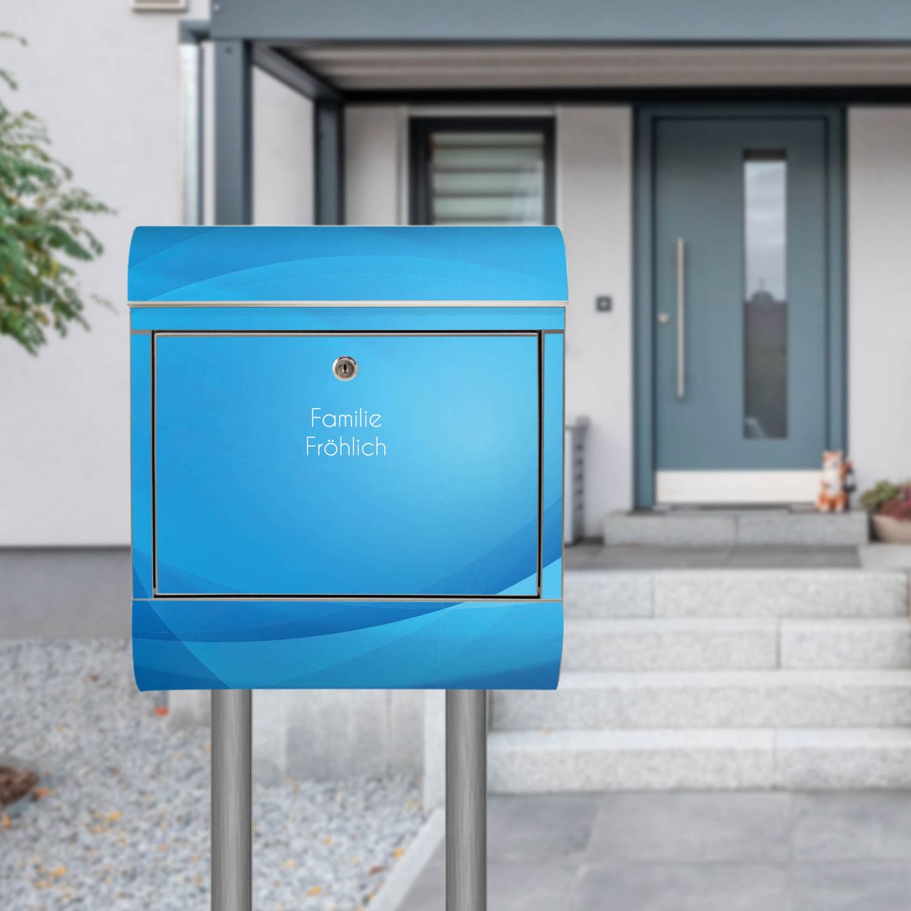 Der banjado Edelstahl Standbriefkasten mit Motiv Blaues Licht und eigenem Wunschtext bietet Ihnen mit seinem Fassungsvermögen genügend Platz auch für große A4 Sendungen. Das integrierte Zeitungsfach eignet sich hervorragend, um unkompliziert die Tageszeitung zu fassen.