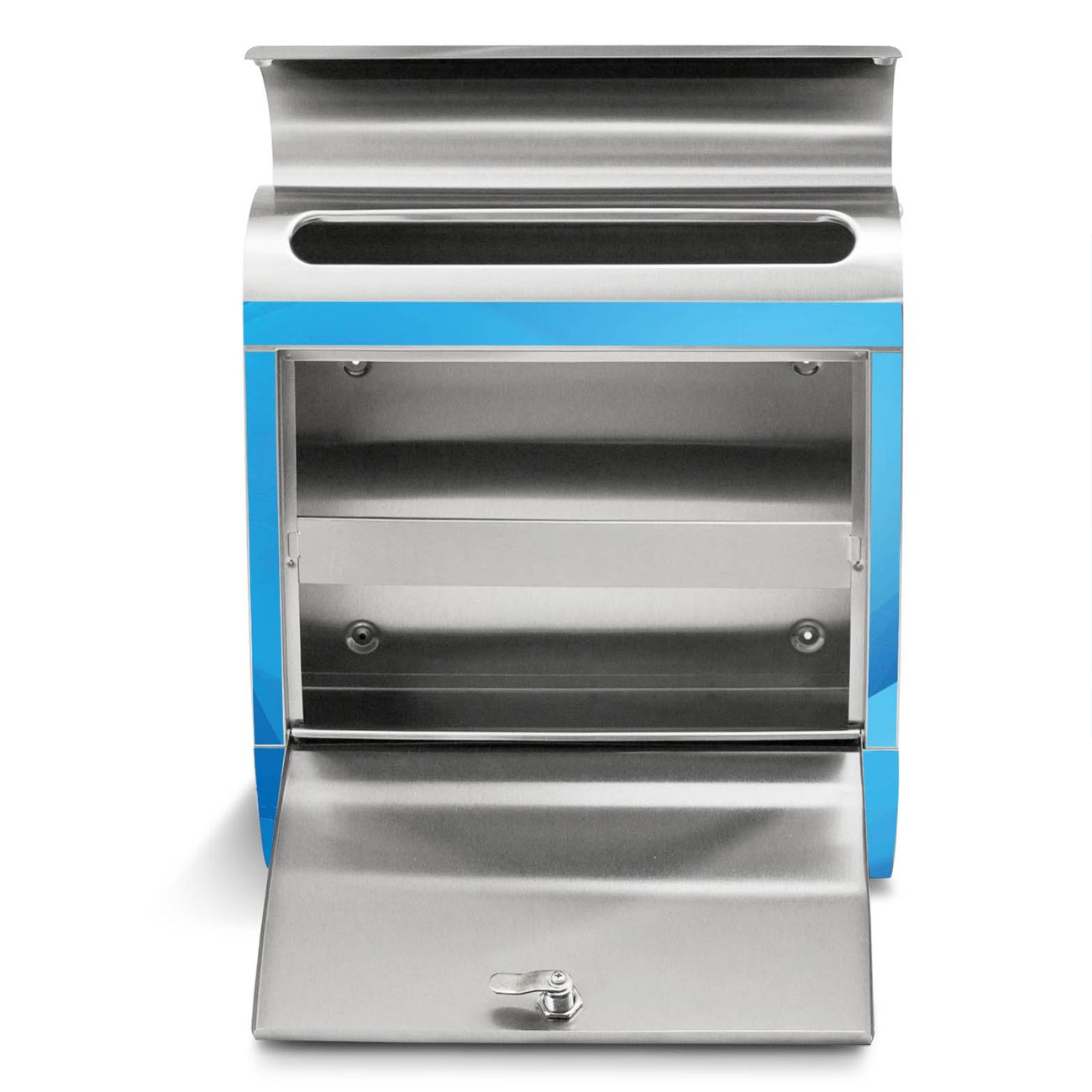 Der Motivstandbriefkasten hat ein sehr ansprechendes und ausgefallenes Design, damit entlocken Sie Ihren Nachbarn und dem Postboten ein Lächeln. Heben Sie Sich ab von der tristen grauen Masse, ohne auf Funktionalität zu verzichten. Der Briefkasten besteht aus hochwertigem 18/0 Edelstahl und die Wetter- und UV-resistenten Folie mit Blaues Licht Motiv ist zusätzlich mit einem Schutzlaminat überzogen. Der Standbriefkasten wird mit Montagematerial und zwei Schlüsseln geliefert.