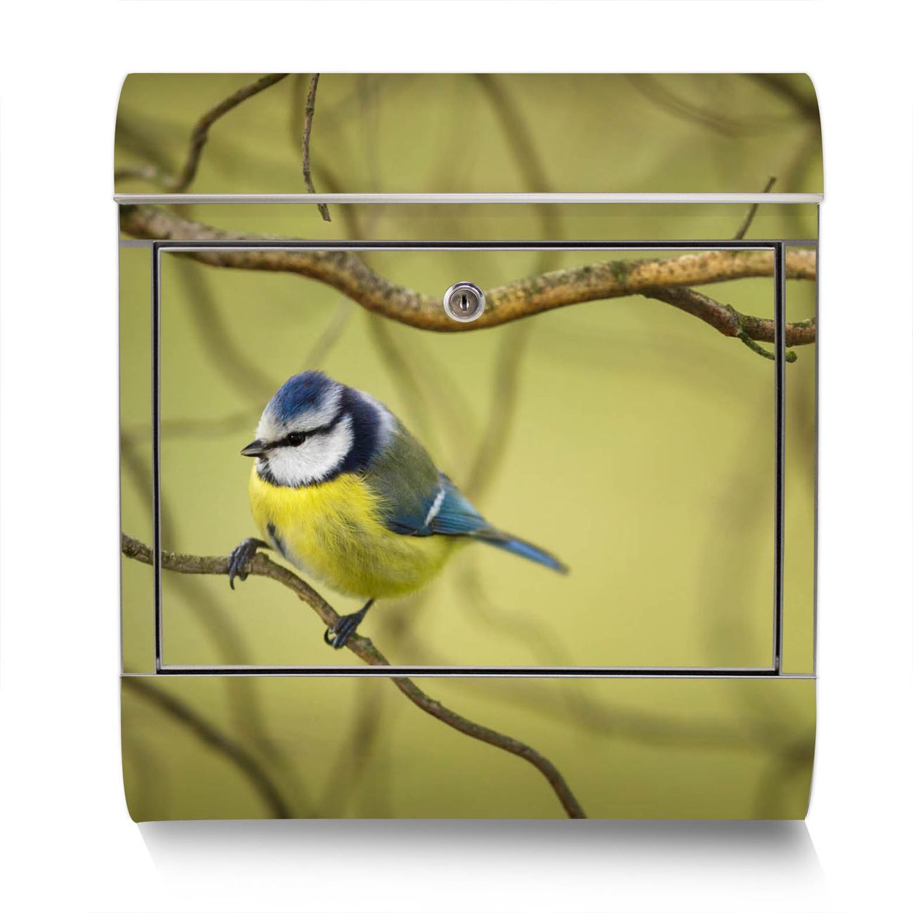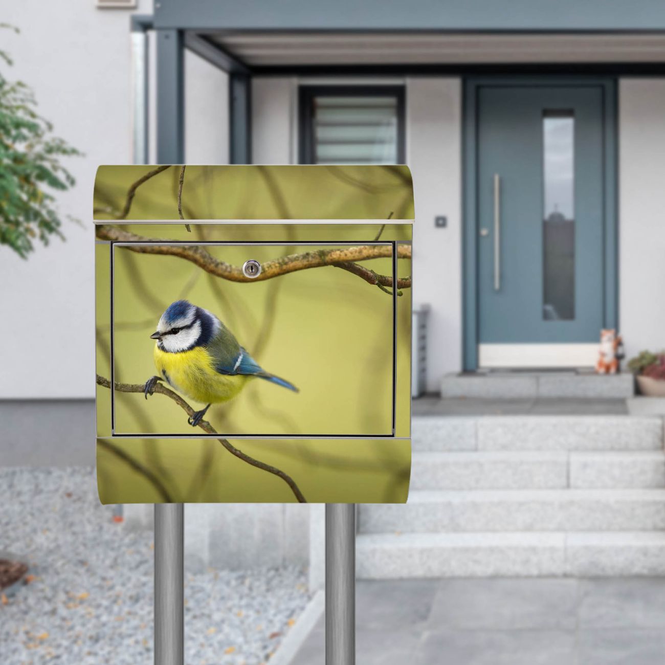 Standbriefkasten Edelstahl Blaumeise im Baum