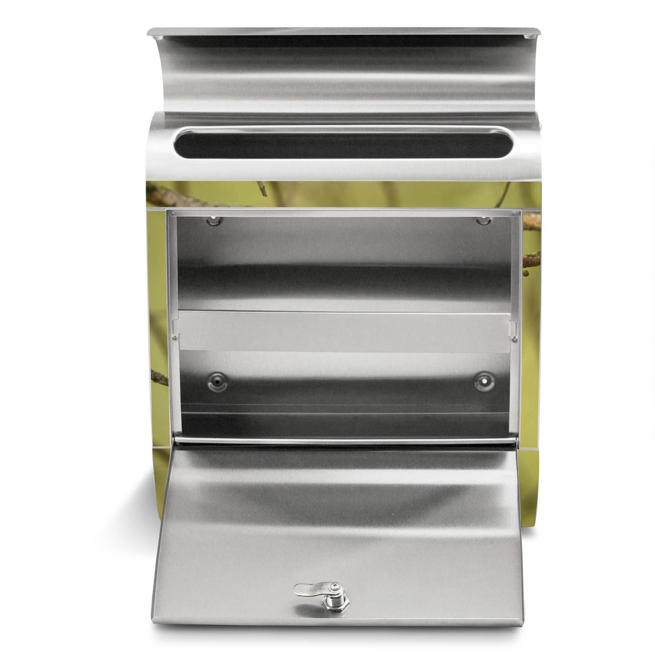 Der banjado Edelstahl Standbriefkasten mit Motiv Blaumeise im Baum bietet Ihnen mit seinem Fassungsvermögen genügend Platz auch für große A4 Sendungen. Das integrierte Zeitungsfach eignet sich hervorragend, um unkompliziert die Tageszeitung zu fassen.